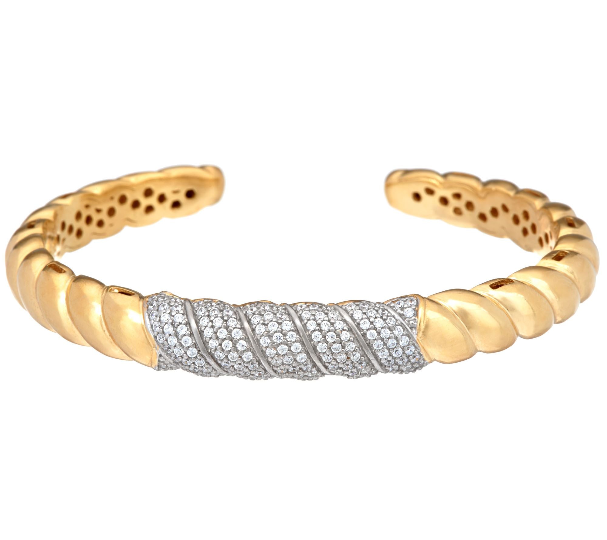 Sculpted style. This sterling silver cuff showcases a cable design with a center station of clear crystals bead set in white rhodium plating. From the Italian Jewelry Collection.