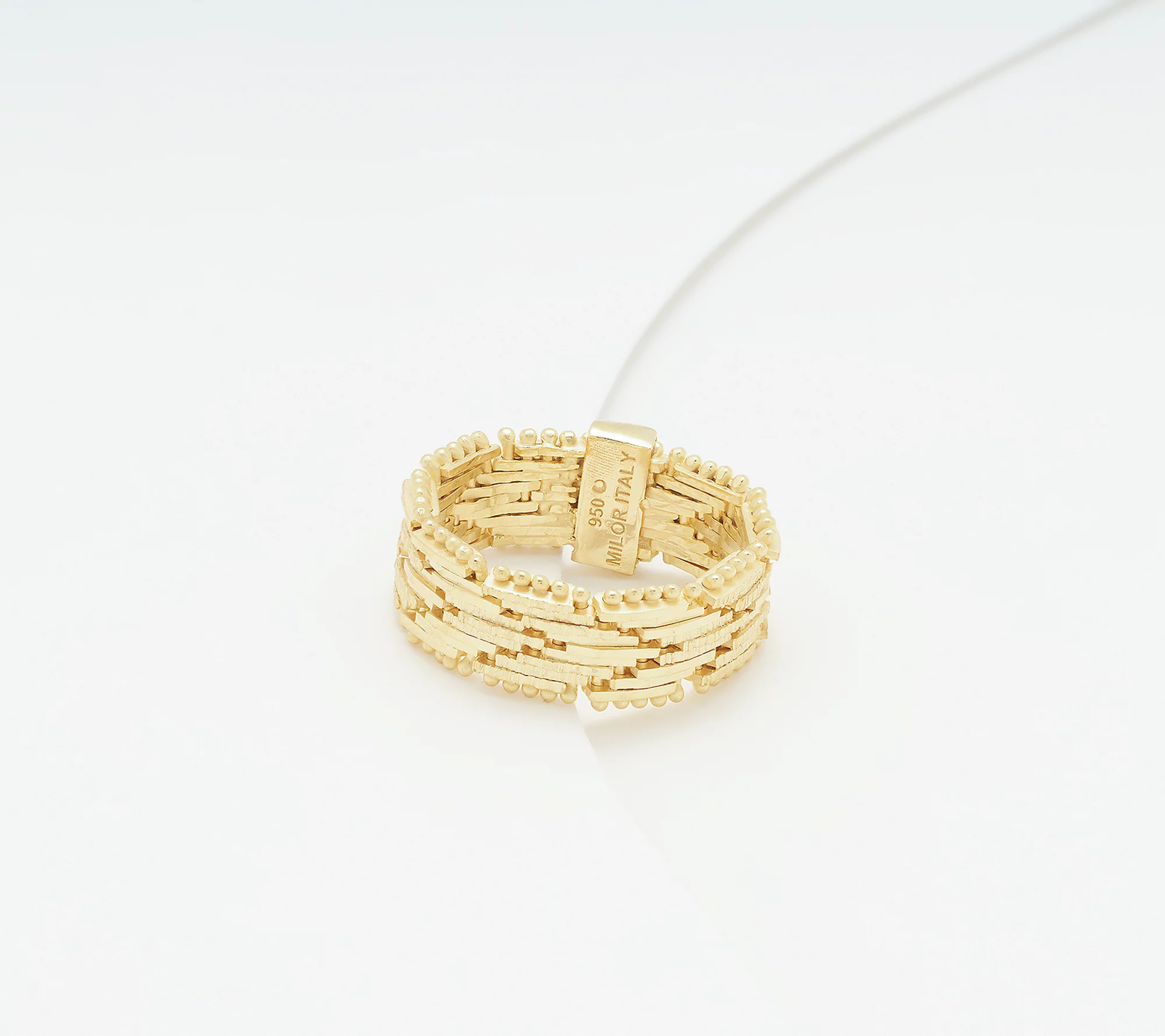 Effortlessly transition from workdays to weekends with this textured band, bringing a refined edge to any look. The riccio design, highlighted by arrow motifs and bead detailing, creates a dazzling dimension you'll love mixing with other pieces or spotlighting on its own. From UltraFine® 950 Silver Nickel-Free Jewelry.