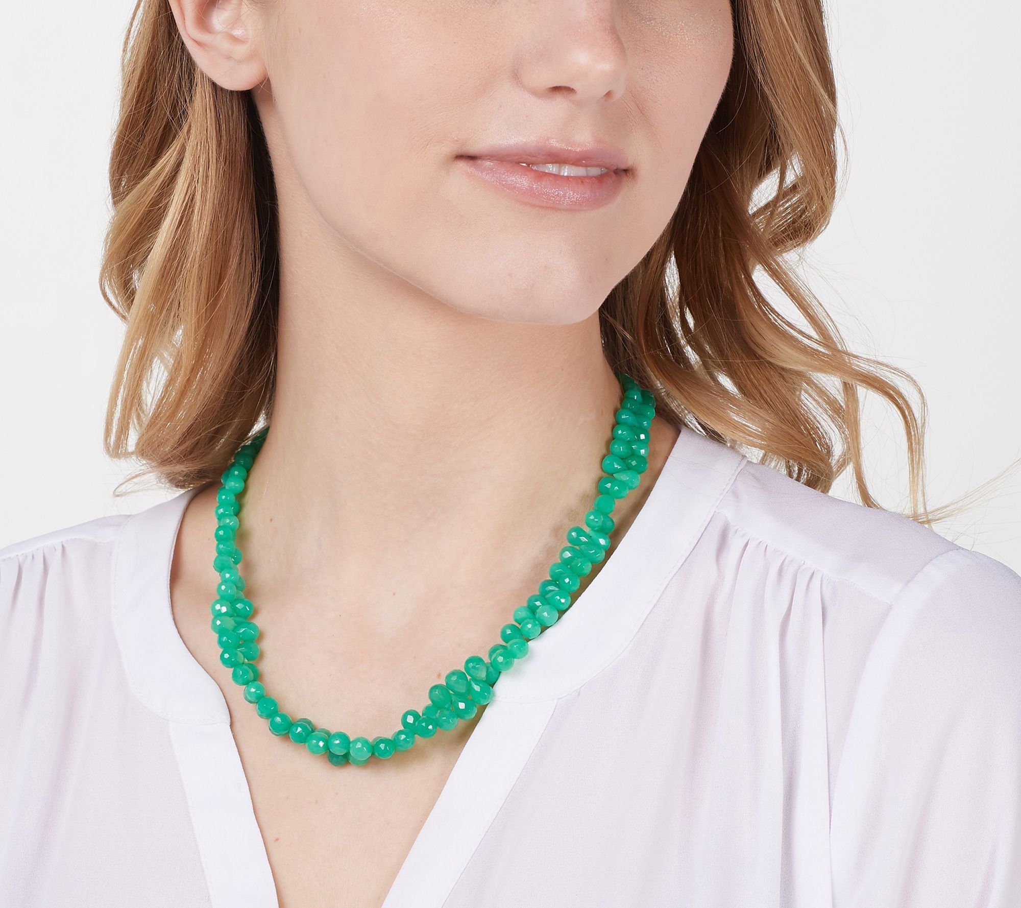 Dale un toque dramático a cualquier conjunto con este collar de cuentas de piedras preciosas. Sus colores vibrantes y brillantes harán que destaques dondequiera que vayas.