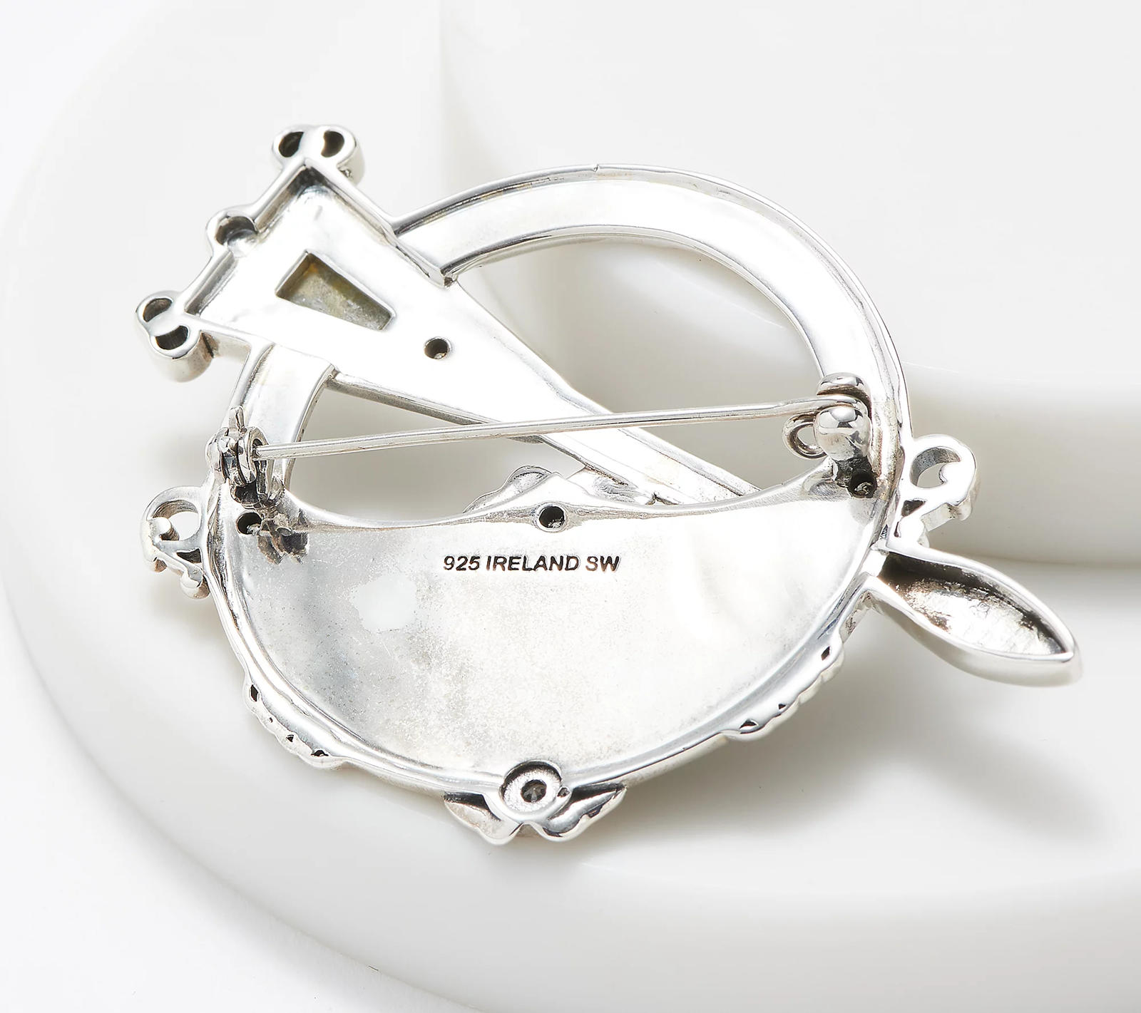 Wear this Tara brooch, sparkling with cubic zirconia Diamonique simulated diamonds and smooth Connemara marble, as a proud symbol of your Celtic heritage.