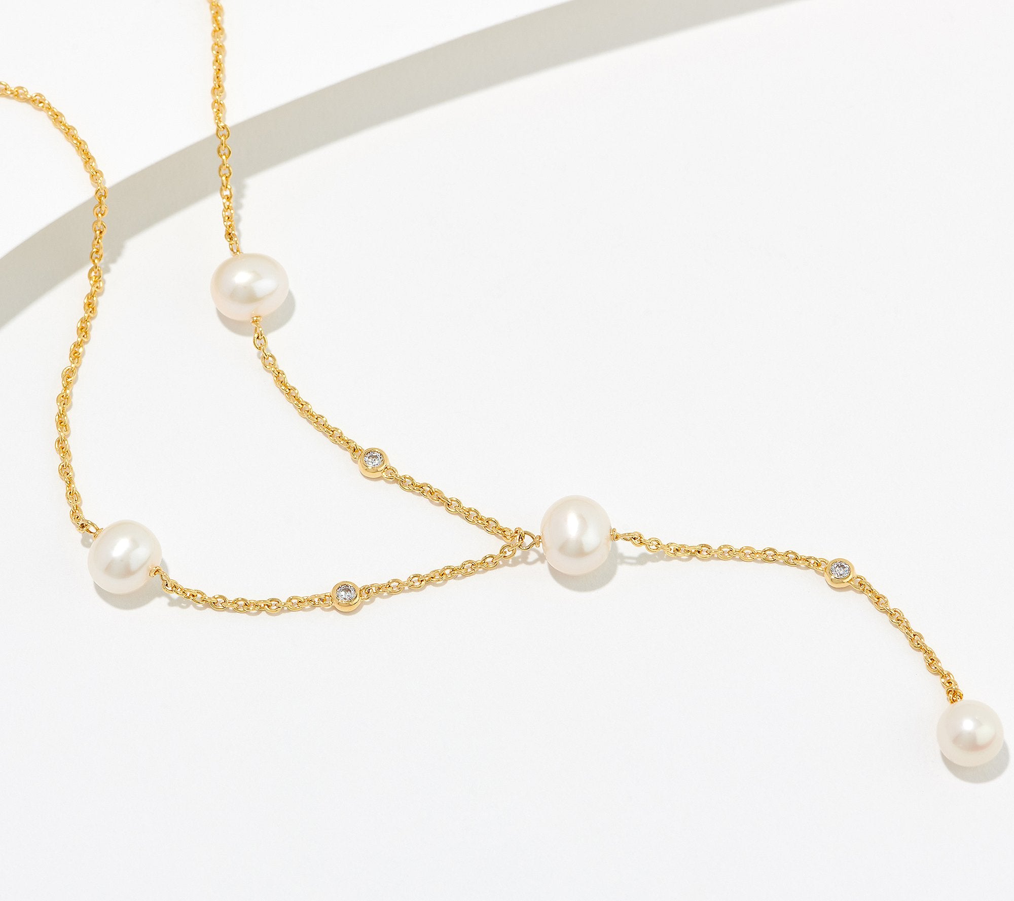 Cubic zirconia Diamonique simulated accent diamonds and cultured freshwater pearls meet to make a dazzling necklace. This stunner brings a classic-meets-modern touch to every look.
