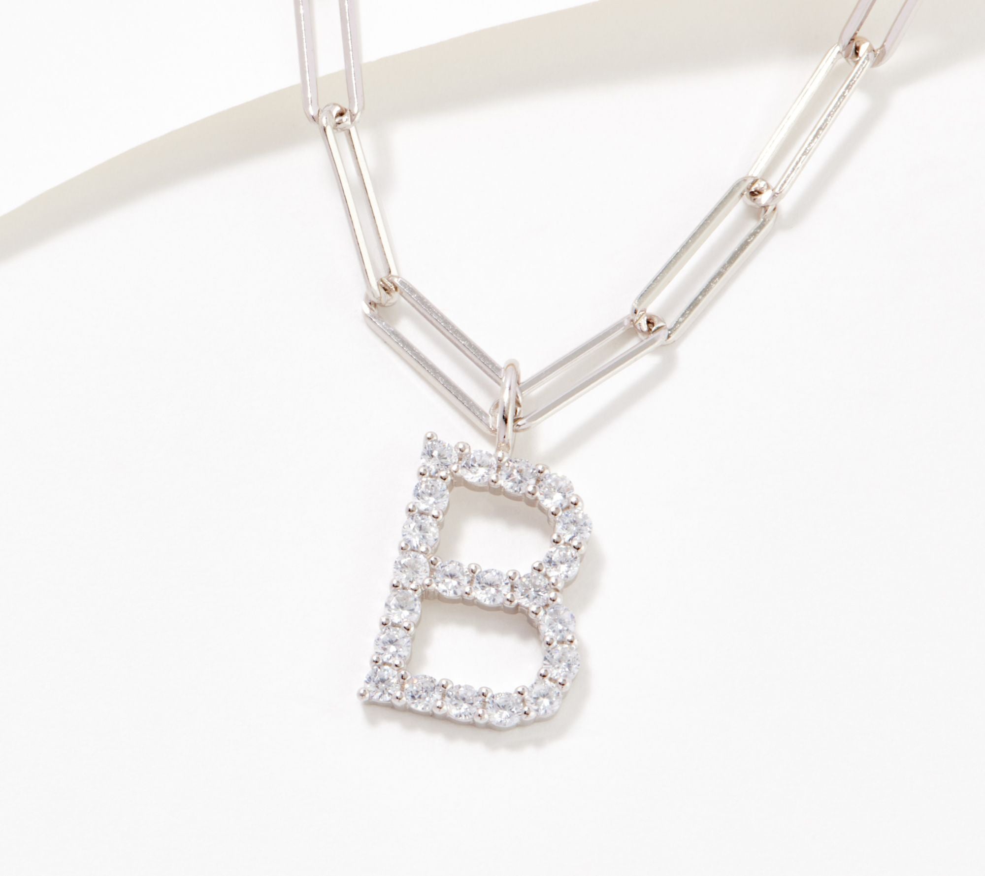 Collar Diamonique de plata de ley con circonitas y eslabones tipo clip con inicial "L", 45,7 cm