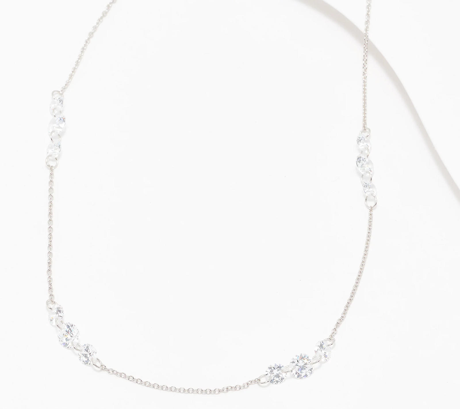 Skip the plain chain and traditional pendants. This Diamonique x Jennifer Miller floating necklace creates a captivating silhouette by meticulously arranging cubic zirconia Diamonique simulated diamonds along a cable chain in an unexpected way.