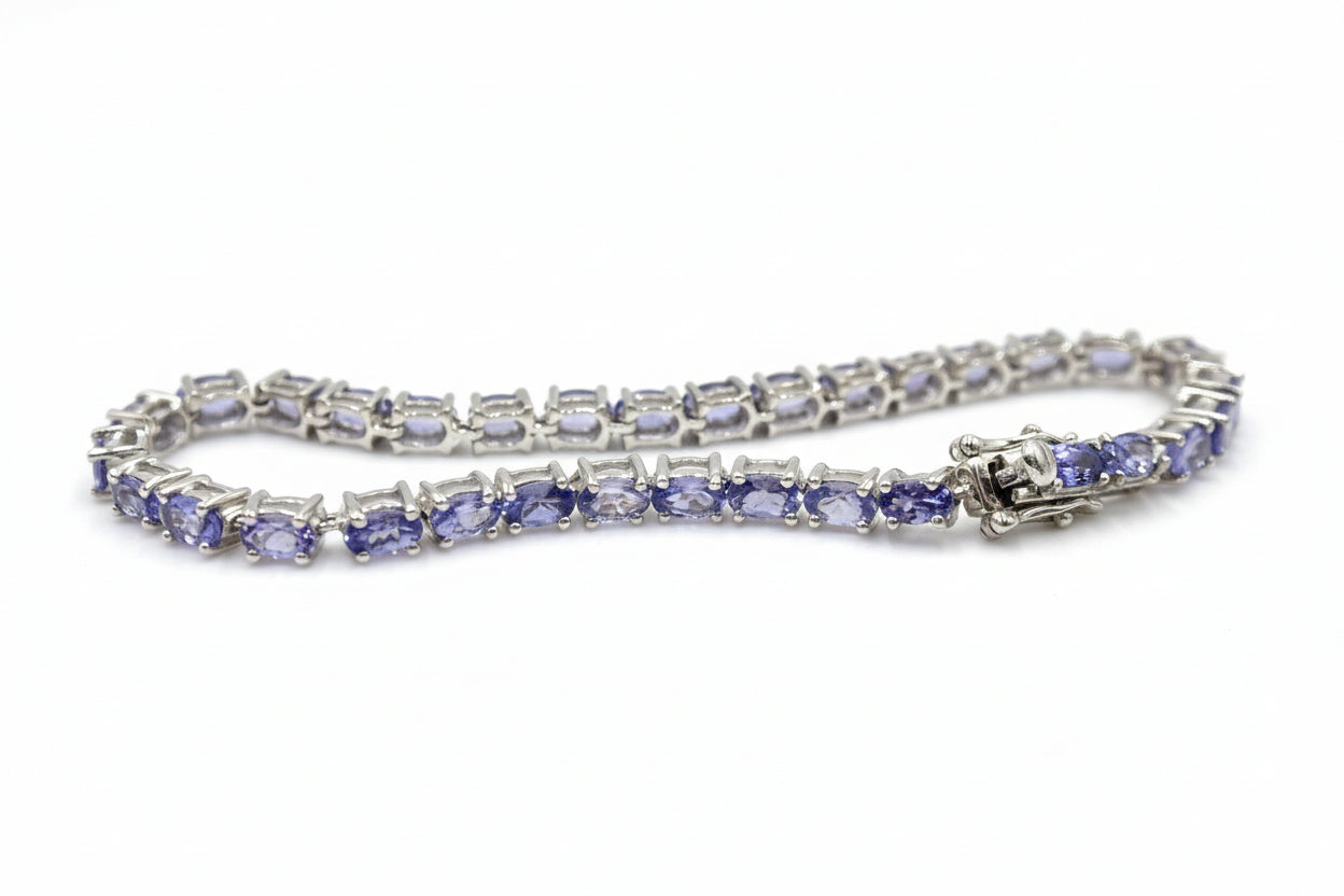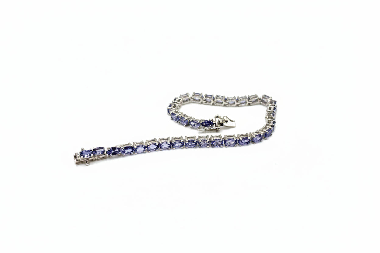 Pulsera de tenis de tanzanita ovalada en plata de ley Generation Gems: un brillo elegante en cada movimiento.
