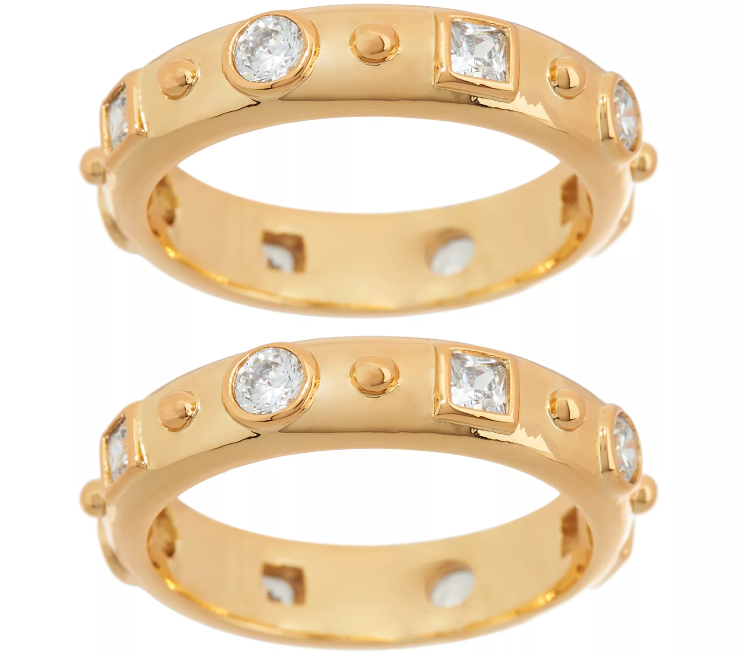 Double your elegance with one pair of rings--this duo, which features sparkling simulated gemstones. From Heritage Jewelry.