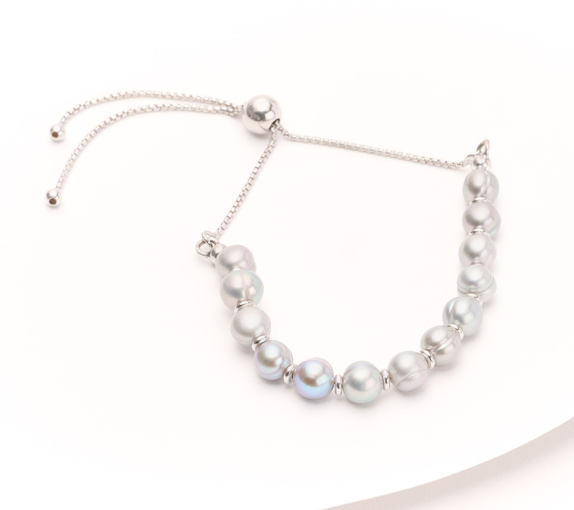 Celebra el cumpleaños, un logro o un gran triunfo de tu fan de la moda favorita con esta elegante pulsera de perlas cultivadas de agua dulce. Es ajustable, ¡así que no tendrás que adivinar la talla de su muñeca! De Honora.