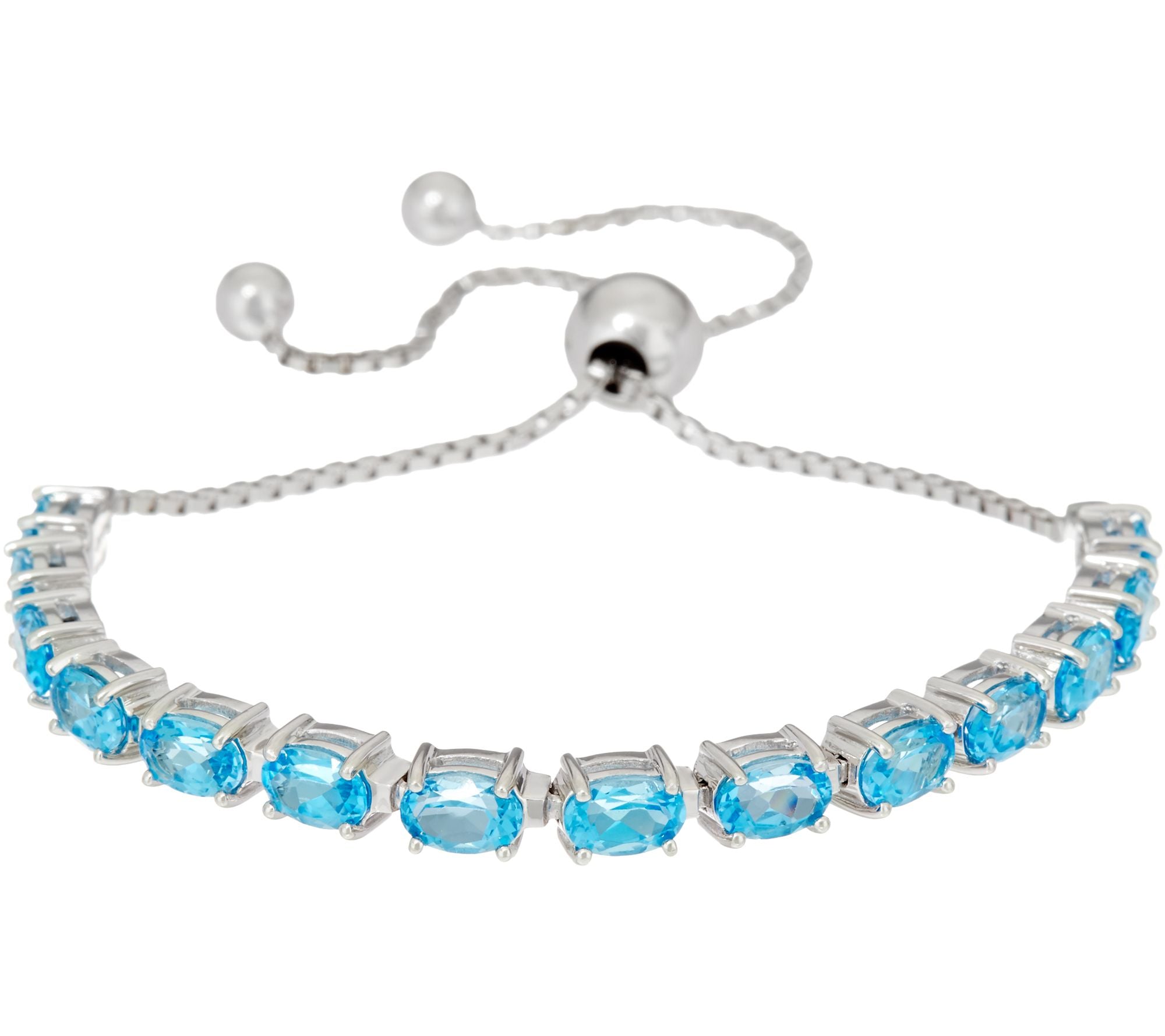 Los accesorios adecuados se ajustan para adaptarse a usted y al mismo tiempo realzan su estilo, como esta pulsera de plata esterlina ajustable que exhibe una hilera de piedras preciosas llamativas.