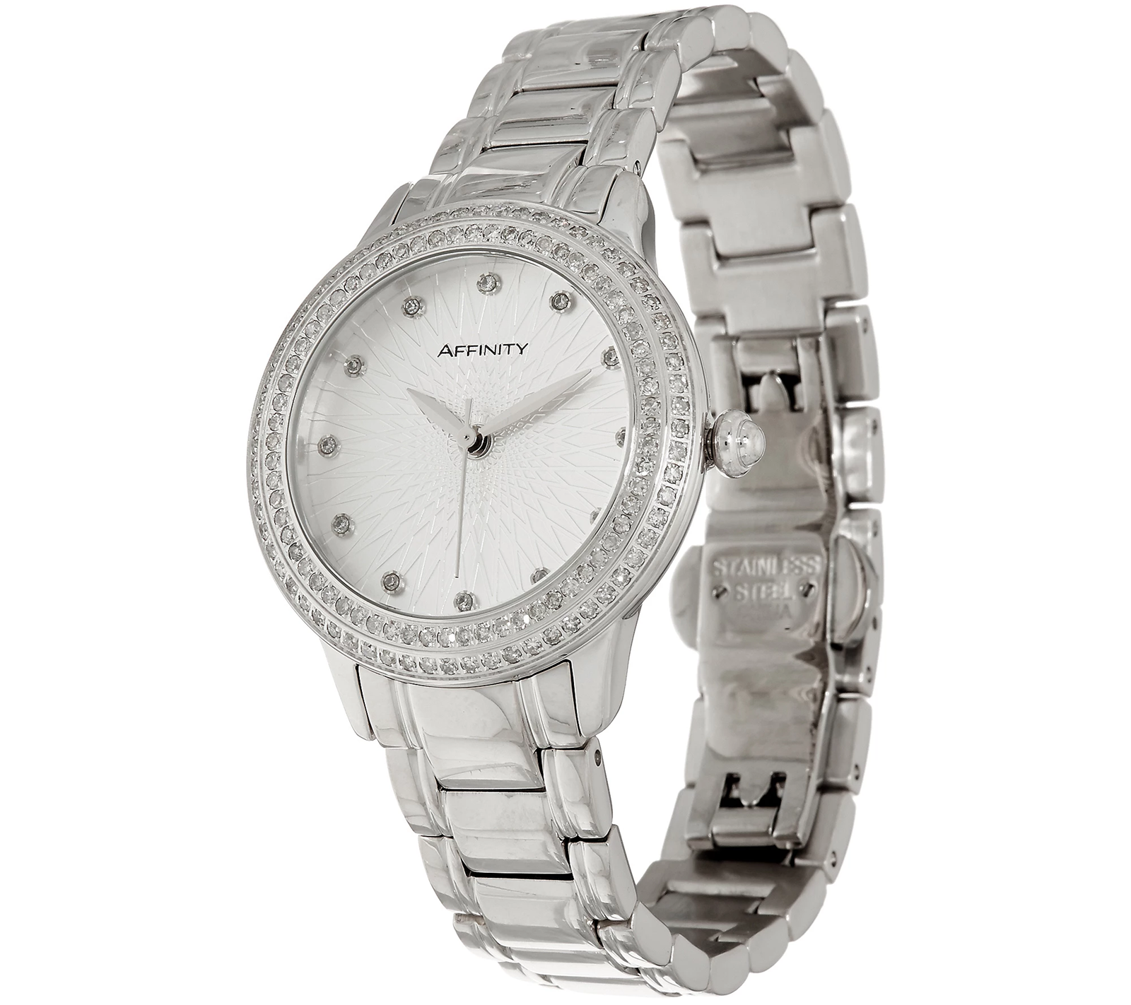 Round, white diamonds take this gorgeous timepiece from pretty to enchanting. From Affinity(R) Diamond Jewelry.
