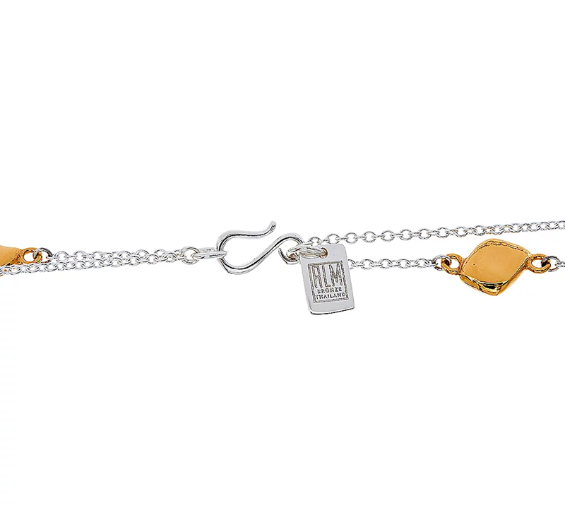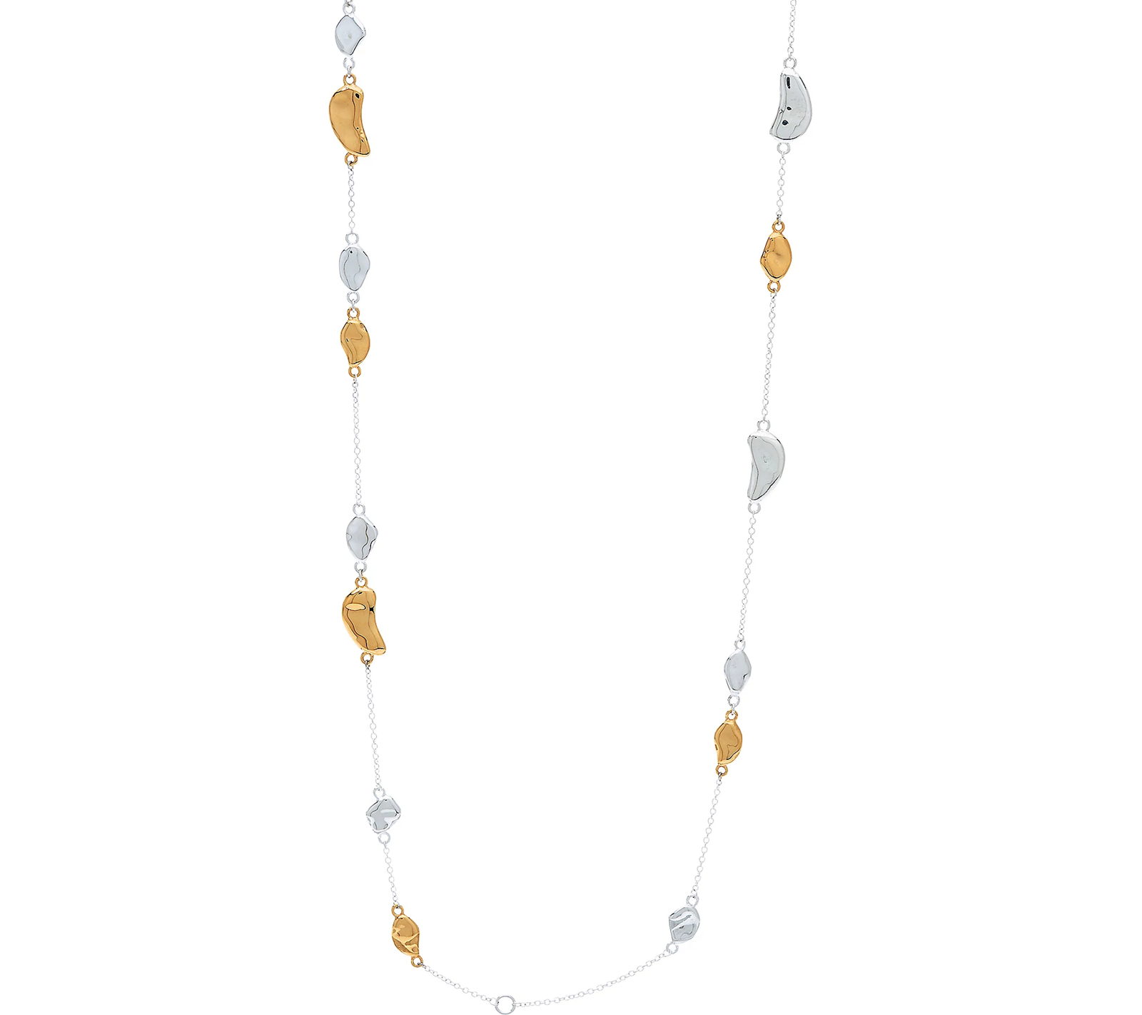 Whether worn as a single layer or doubled up, this RLM necklace is very versatile with stations of hammered pebble shapes in yellow and white bronze. From RLM by Robert Lee Morris.