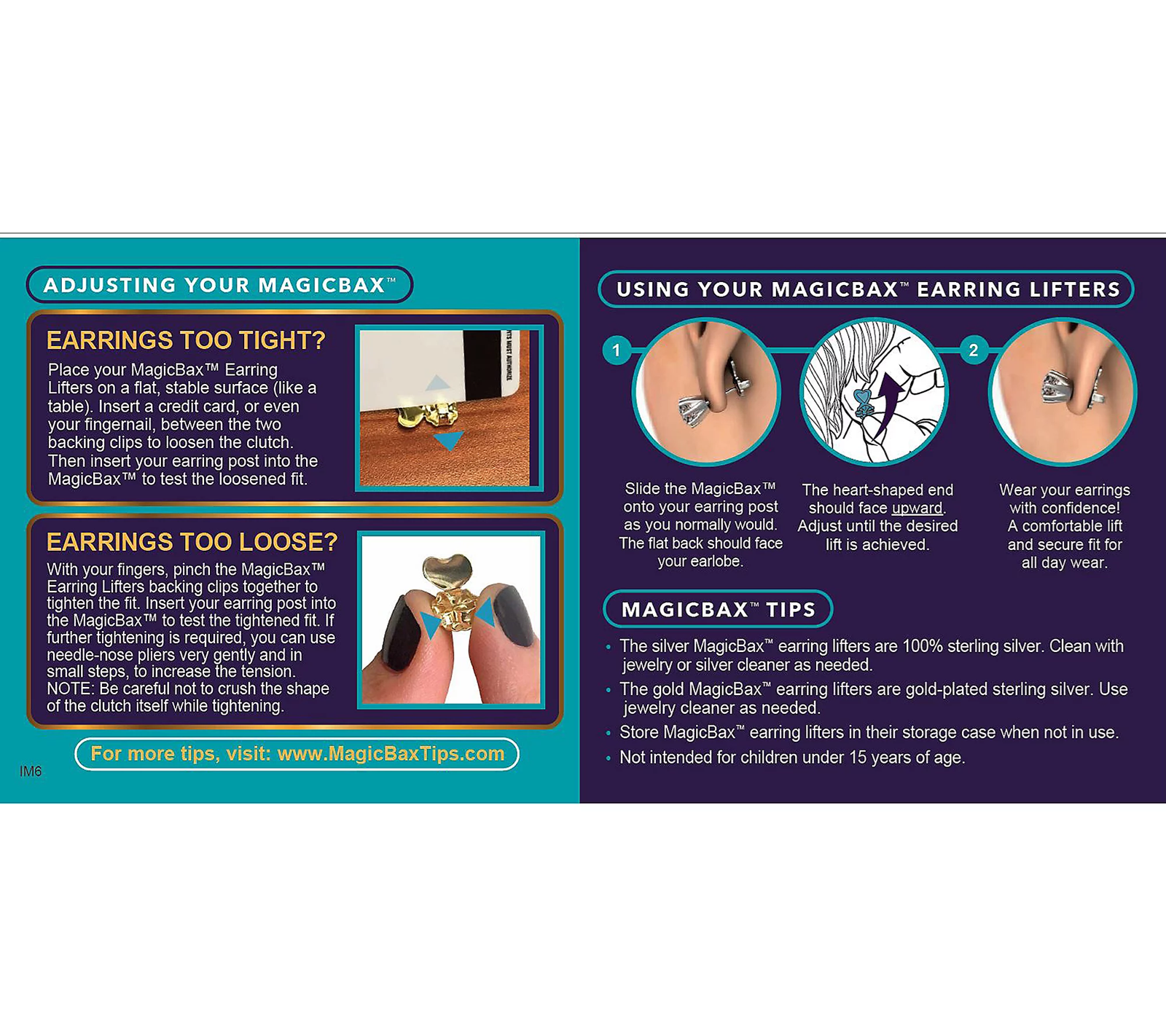 Say goodbye to sagging earrings with MagicBax earring lifters by Lori Greiner. They're designed to be used in place of original backings to keep earrings comfortable, secure, and upright, from front to back. From Lori Greiner.