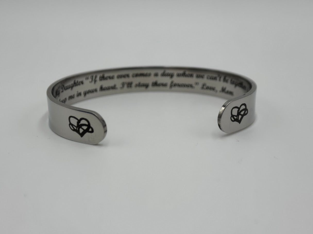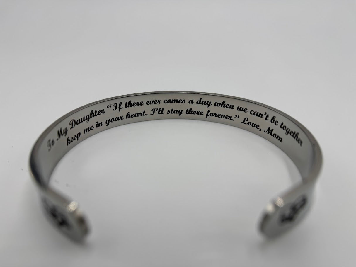 Give a meaningful gift with the The 37 Bracelet Inc. “For My Daughter” Stainless Steel Cuff Bracelet. Crafted in durable stainless steel, this sleek cuff features a heartfelt engraved message that serves as a lasting reminder of love, strength, and connection. Designed in a comfortable 6-3/4" fit, it offers a modern, minimalist look that’s perfect for everyday wear. A thoughtful keepsake she’ll treasure for years to come.