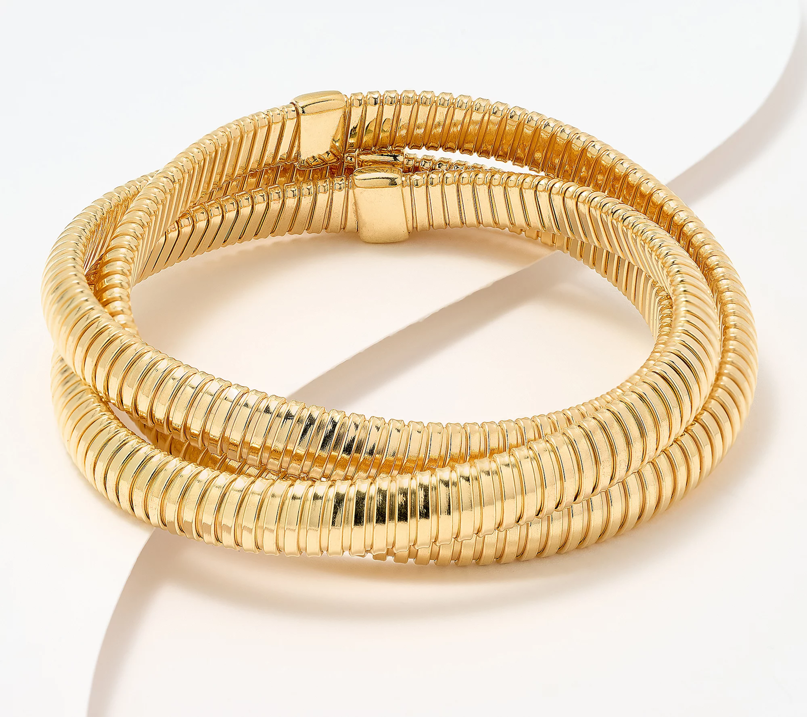 Save the dainty bangle for another day. This luxurious three-strand rolling tubogas bracelet brings a beautiful boldness to your business attire or special occasion looks. From UltraFine® 950 Silver Nickel-Free Jewelry.