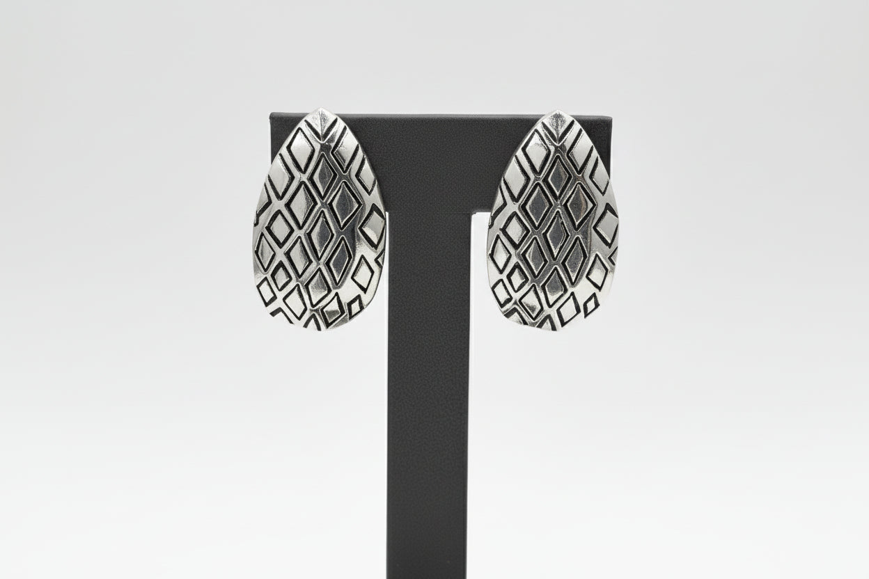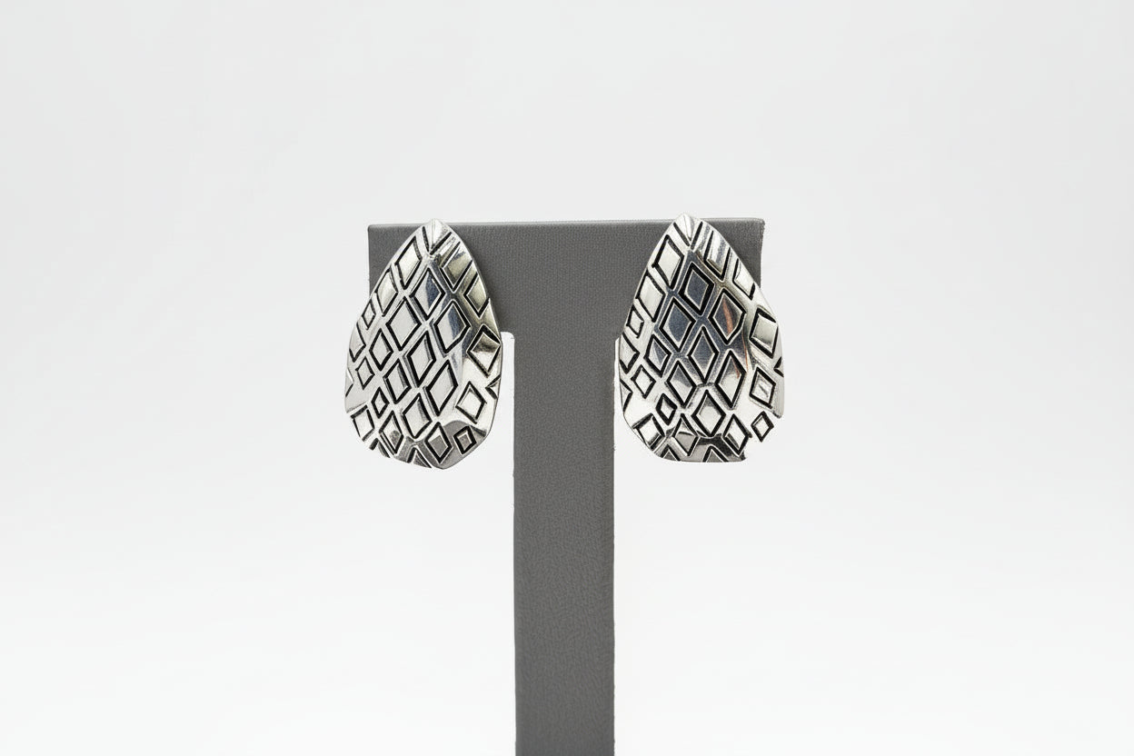 Rare beauty. These bold button earrings done in an angular teardrop shape are an effortless way to flaunt fierce style. The recessed design of diamond shapes in various sizes has a subtle, animal-print appearance that works with a wide array of looks. From Wildlife by Heidi Klum.