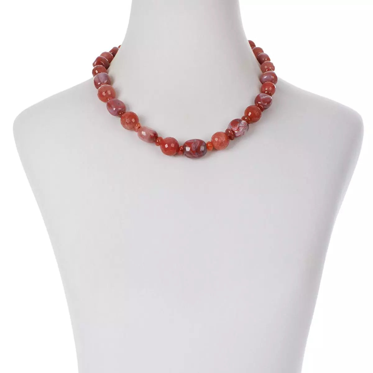 Spice up your jewelry collection with the Jay King Picante Agate Bead Necklace, a bold and vibrant piece featuring rich shades of red, white, gray, and brown. Sourced from South Africa, this naturally swirled agate necklace brings earthy elegance and effortless charm to any outfit. Whether dressing up or down, this statement piece delivers warmth and sophistication.
