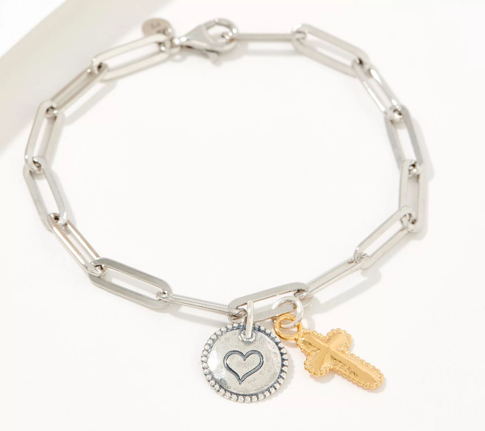 With a retro paperclip link chain and two-tone charms, this bracelet is an adorably you way to accessorize. From Or Paz® Sterling Silver Jewelry.Sterling silver