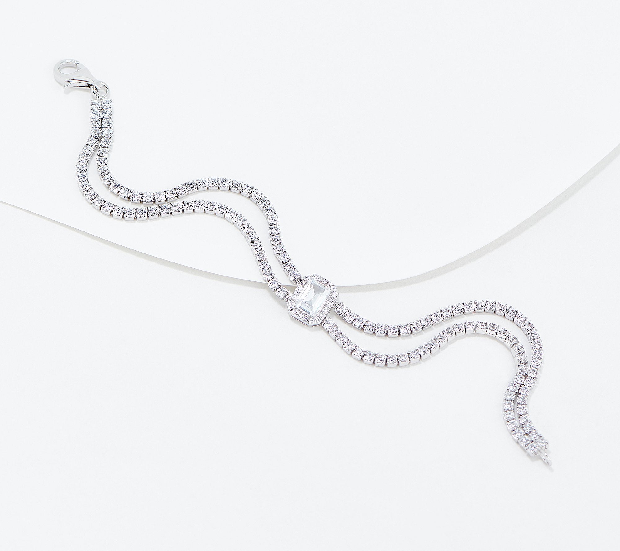 Score twice the sparkle with this double row tennis bracelet that sports an elegant array of round-cut cubic zirconia Diamonique simulated diamonds accented with an emerald-cut stone in the center.