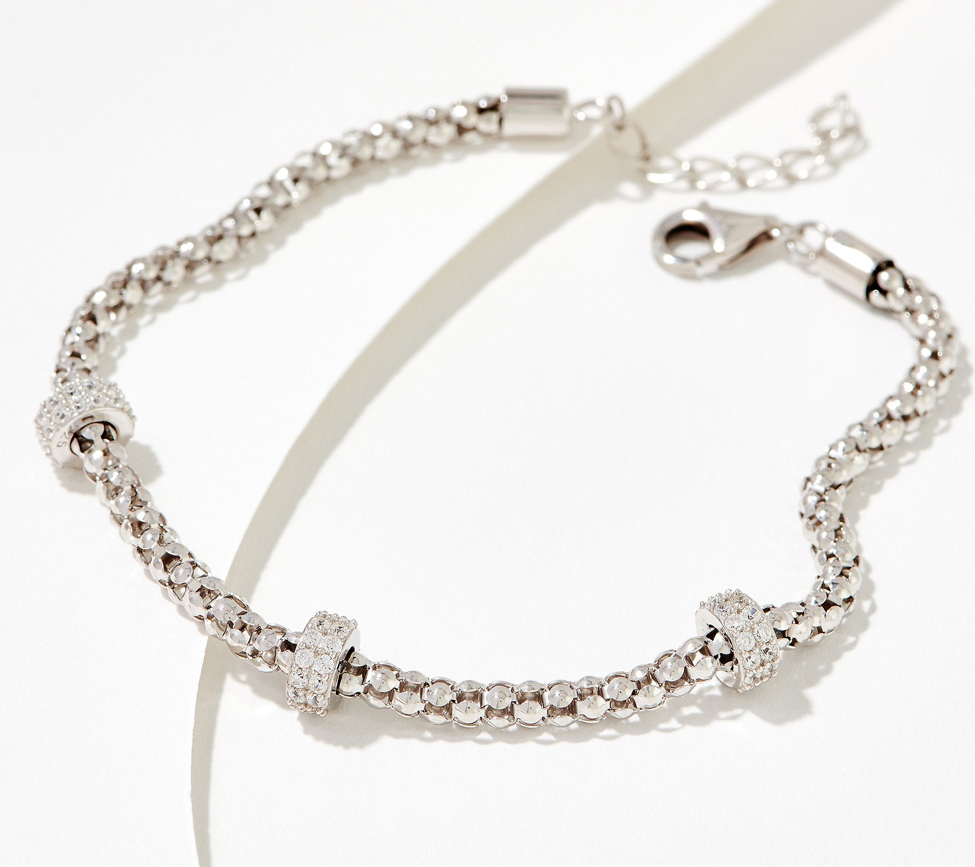 With sparkling pave cubic zirconia Diamonique simulated diamond stations, this trendy goes-with-everything bracelet is one you'll wear again and again. (Don't you just love go-to pieces like that?)