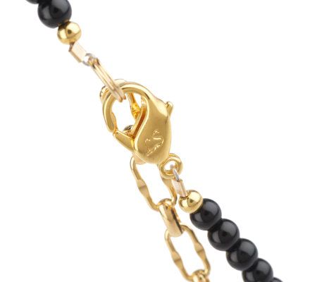 A necklace that suits your bold and beautiful personality. Large, red coral free-form nuggets alternate with round, black glass beads to create a stunning look that is sure to capture the attention of many admirers. Round, black glass beads and goldtone accent beads at the ends of the necklace complete the eye-catching accessory. From Lee Sands.