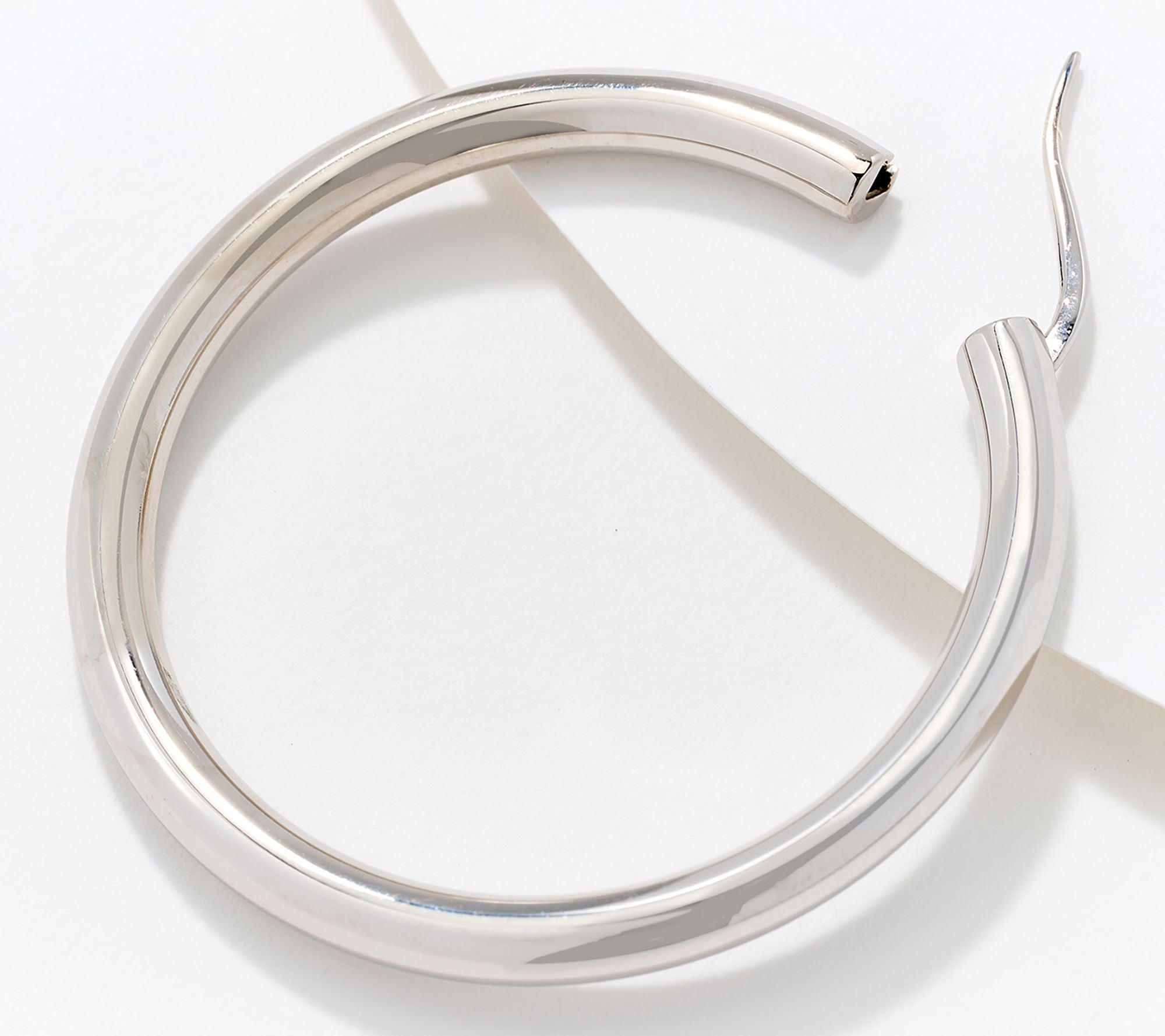 Establish a love-love relationship with your go-to hoops again. A comfort closure allows this high-shine design to sit flush to your lobes -- for more effortless wear! From Silver Style®.