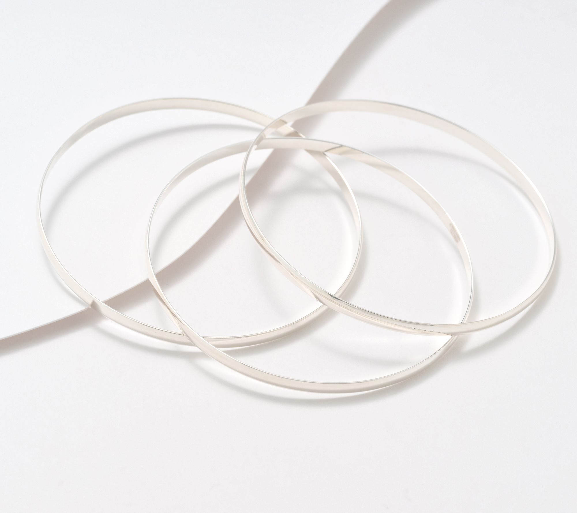 Bangles are always better in multiples! Layer on this slender timeless trio -- crafted in polished UltraFine® 950 silver -- to frame a 3/4-length sleeve or accessorize a simple sundress, or gift 'em to your bracelet-loving besties! From UltraFine® 950 Silver Nickel-Free Jewelry.