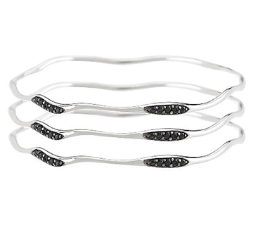 Triple threat. The combination of UltraFine 950 silver, stations of prong-set black spinel gemstones, and a wonderfully wavy design makes this set of three bangles a must-have. From UltraFine(R) 950 Silver Nickel-Free Jewelry.