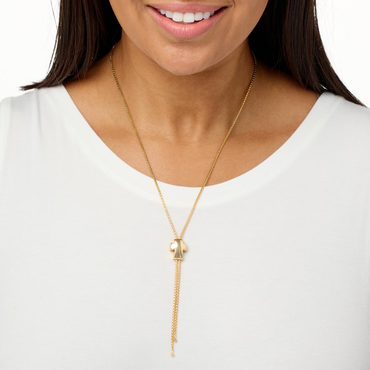Build an outfit around this lariatdesign cross necklace, a modern look for those devoted to faith and inspired by chic style.