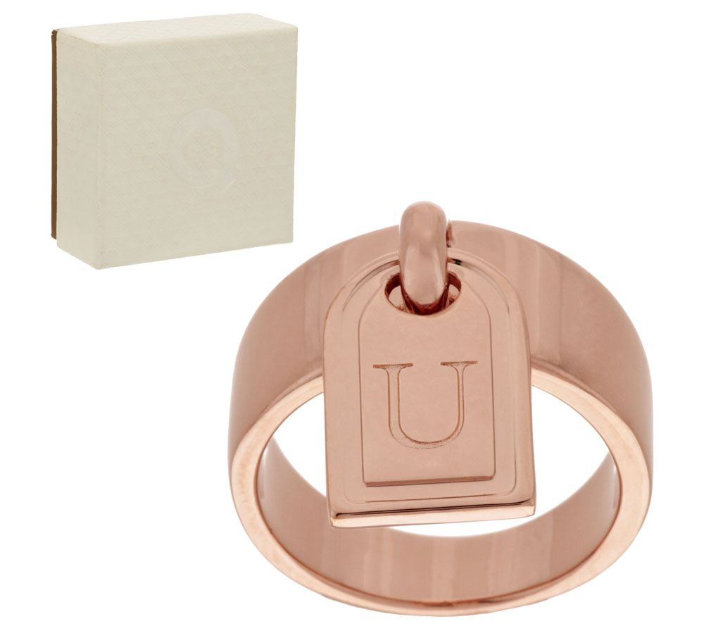 Tag, you're it! Show off your it girl status with this stylish ring. A highly polished initial tag charm hangs from the tapered band--all done in beautiful rose-colored bronze. From the Bronzo Italia(R) Jewelry Collection.