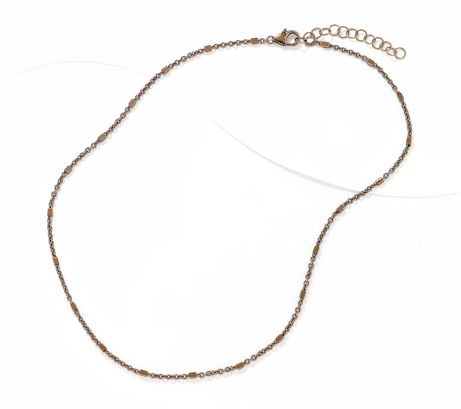 Luxe cube stations add unmistakable allure to this finely polished bronze roll chain. The extender gives you options to wear it solo, layered, or styled with an open collar. From David Markstein.