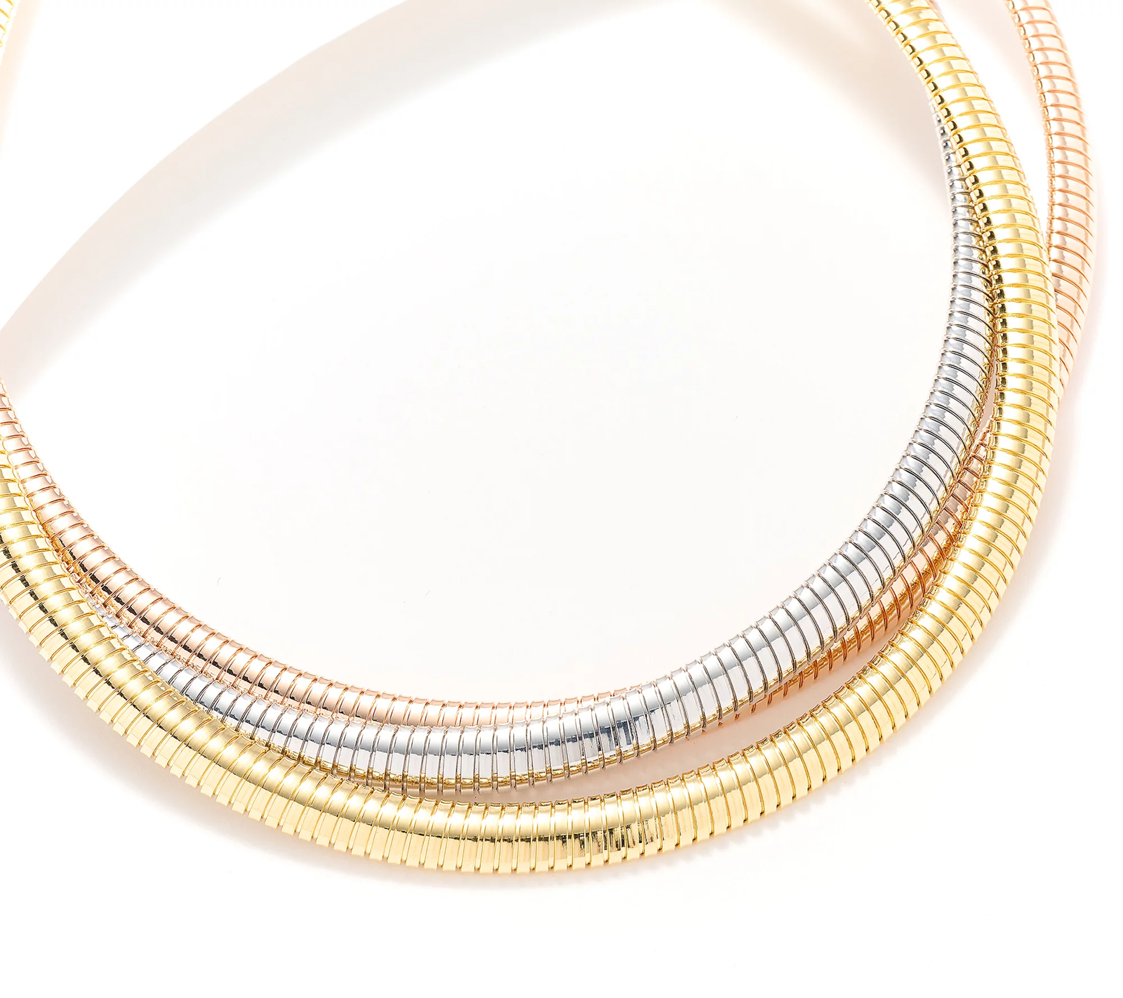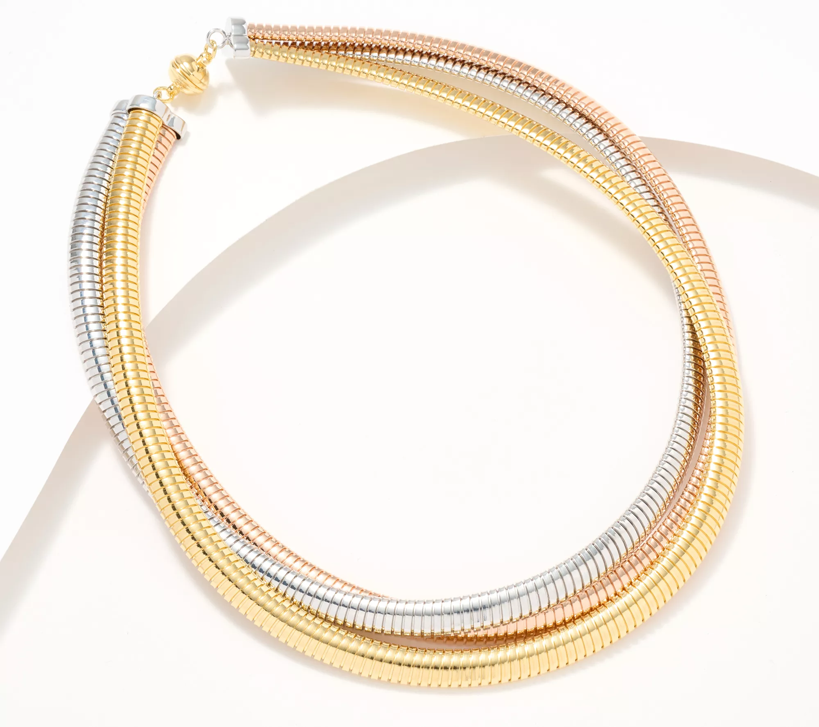 Trice as nice as a basic chain, this three-strand tubogas necklace fastens with a magnetic clasp for quick and easy accessorizing. From David Markstein.