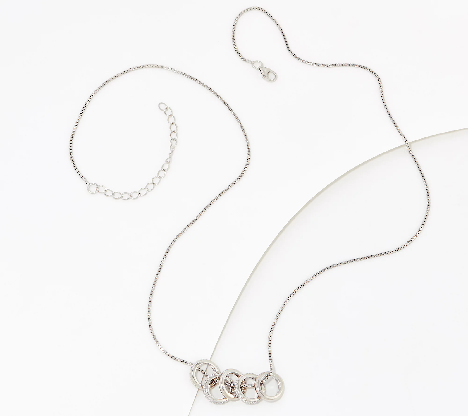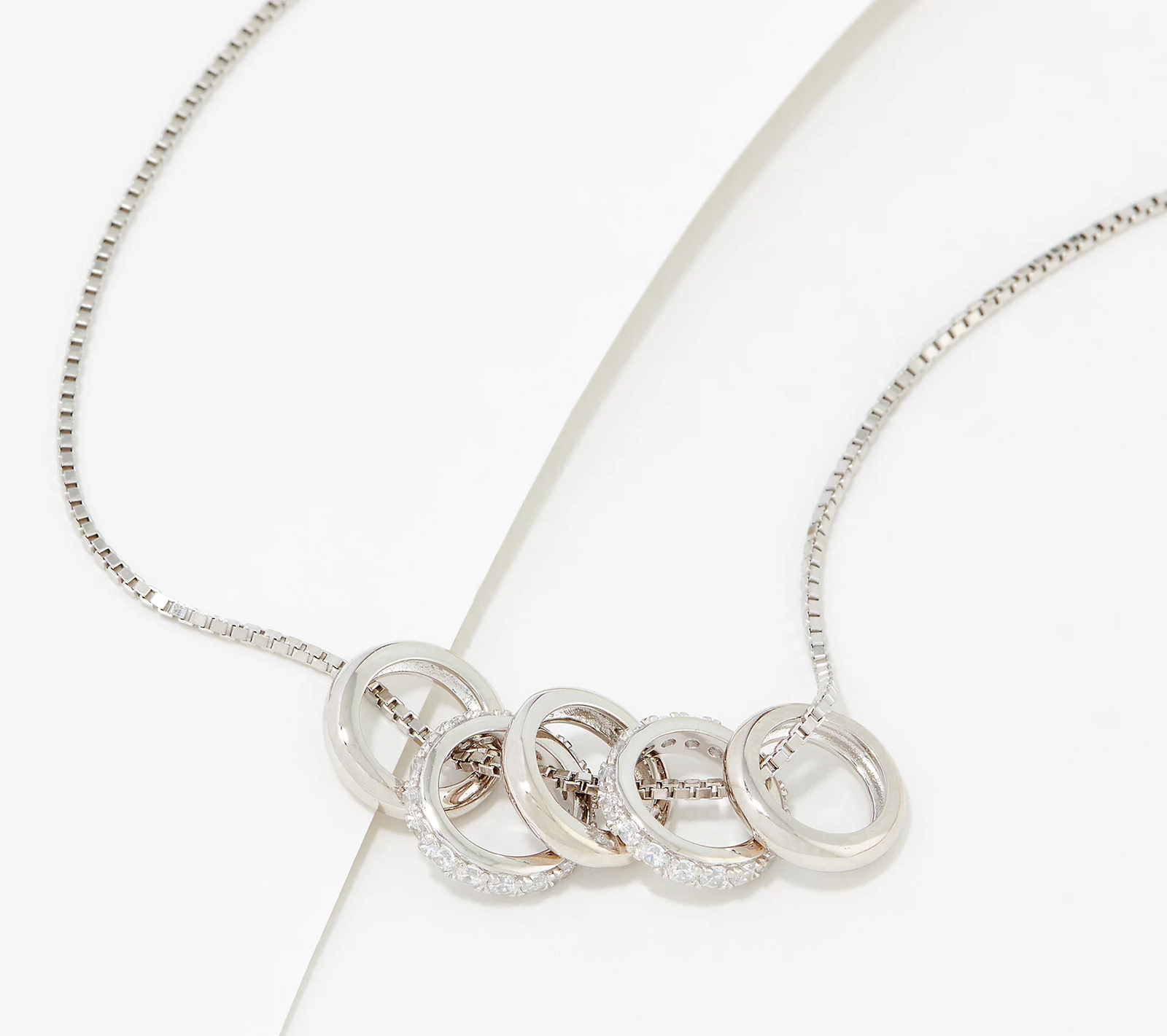 The fab five. Accented with cubic zirconia Diamonique simulated diamonds, this box chain beams with five radiant rings to create a stunning statement piece.