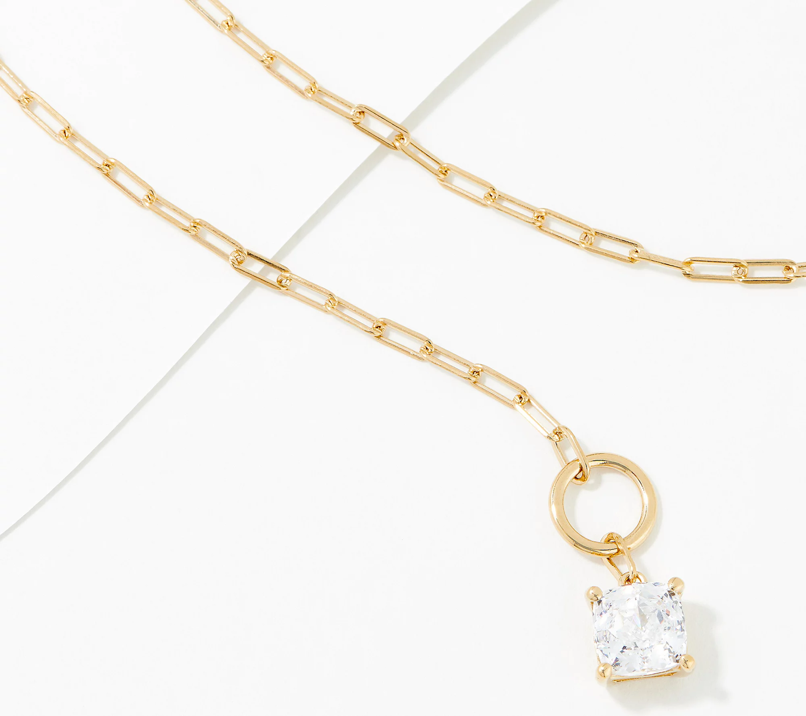 Hello, sparkle! This necklace brings the bling (in a classic-chic way) with one stunning, 135-facet center sparkler. Plus, the paperclip chain style is so on-trend, appearing on your social feed again and again.