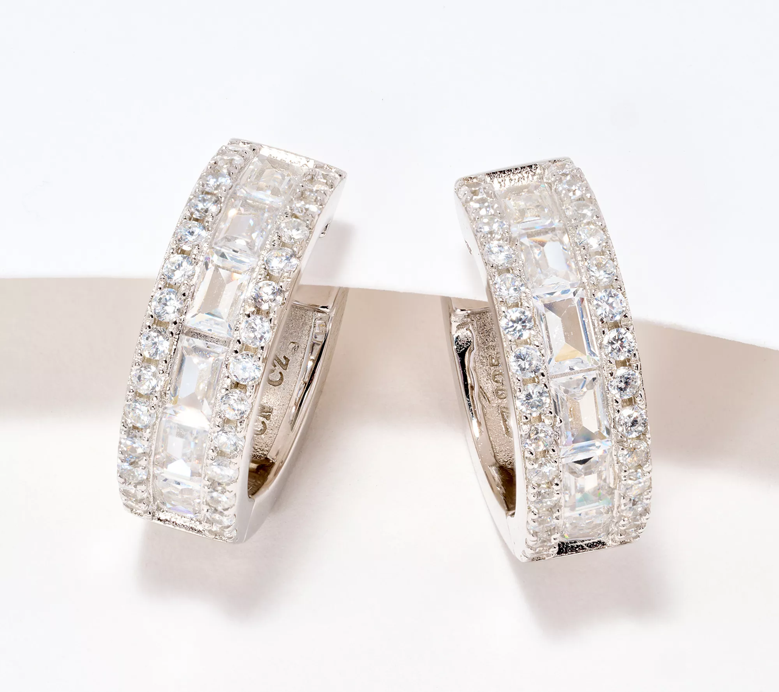 Add some brilliant bling to any outfit with these huggie hoops lined with baguette-cut cubic zirconia Diamonique simulated diamonds.