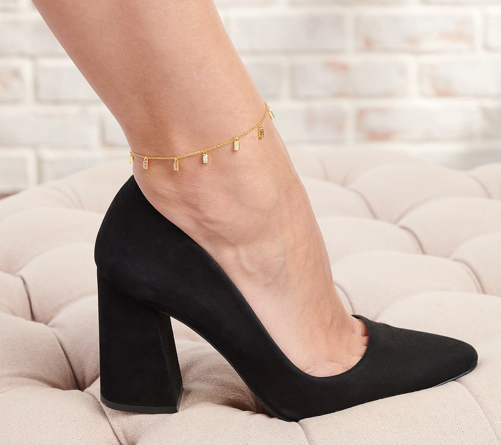 A date with friends, your partner, or yourself calls for extra razzle-dazzle. Don't you think?! Enter this dangling station anklet that frames your shiny new sandals or pedi with an unexpected (but very welcome) splash of sparkle.