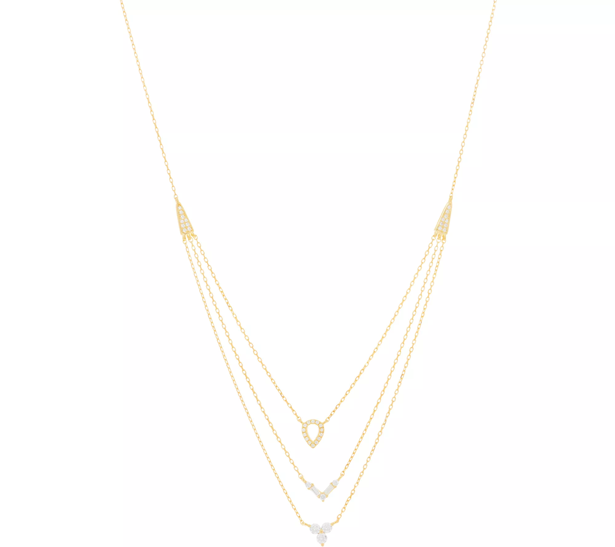 An emphatic addition to any ensemble, this luxurious layered necklace catches your attention with thee different-shaped drops adorned with cubic zirconia Diamonique simulated diamonds.