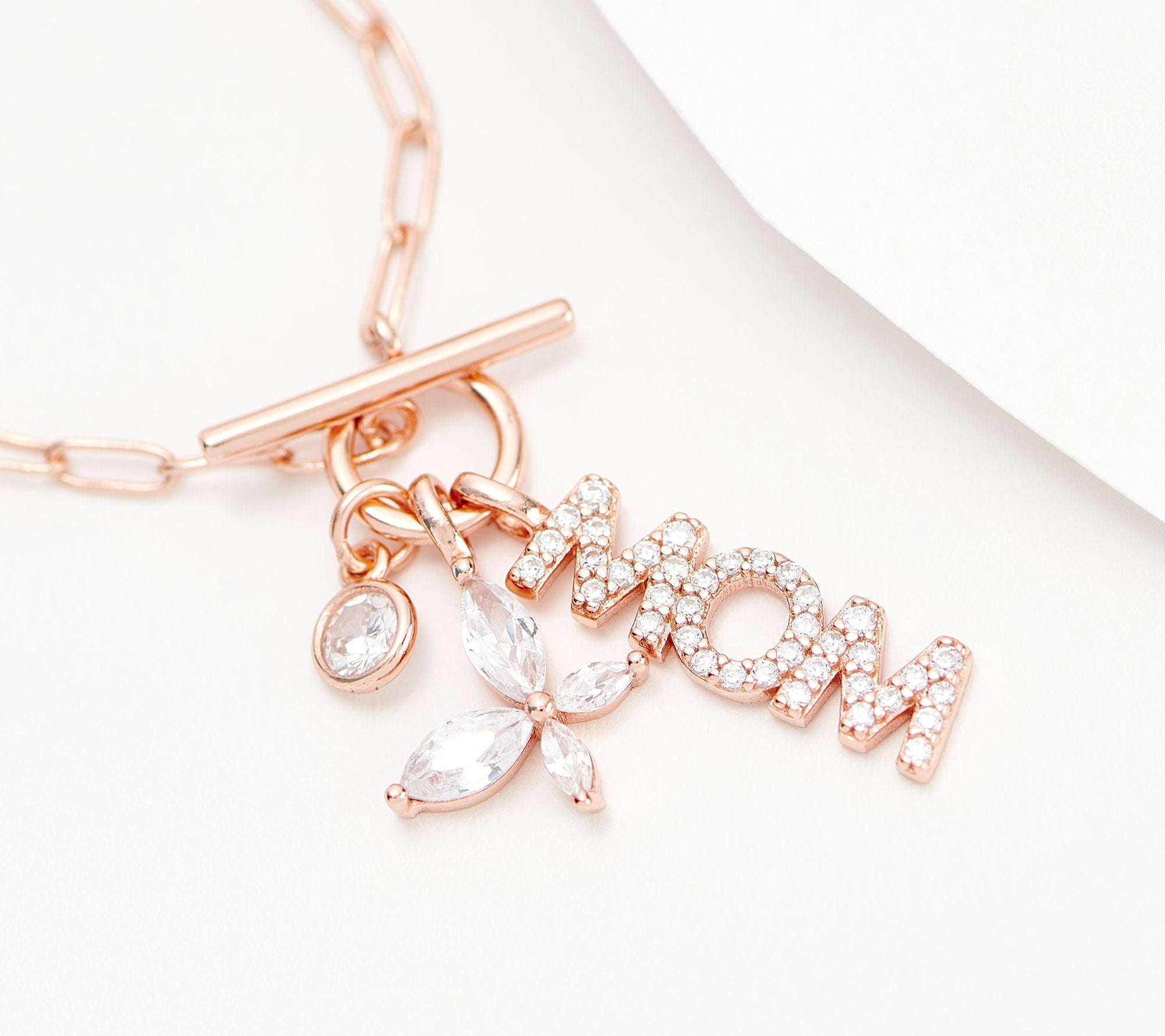 How do you spell love? We spell it M-O-M -- and so does this sparkly sweet necklace with a flutter of charms at the toggle. Such a fresh look!