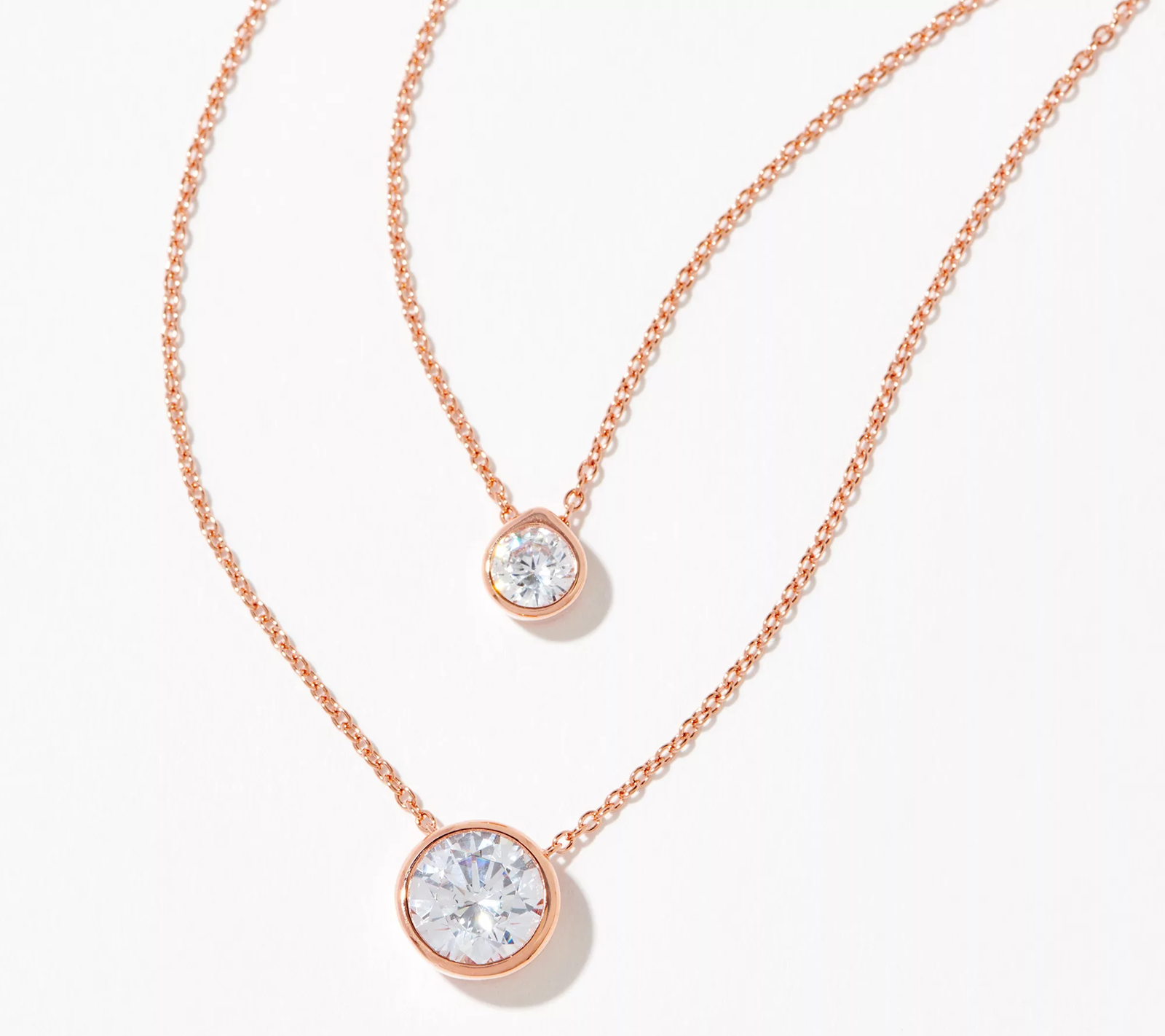 What could be more lovely than a layered necklace that features not one, but two sparkling solitaire cubic zirconia Diamonique simulated diamonds that shine bright for all to see?