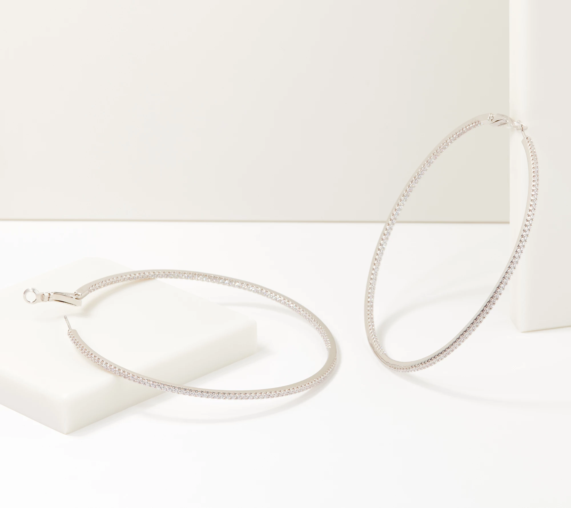 You were born to be brilliant, and these hoop earrings help you do just that -- in a big way. The ample inside-outside design showcases plenty of shimmer from cubic zirconia Diamonique simulated diamonds.