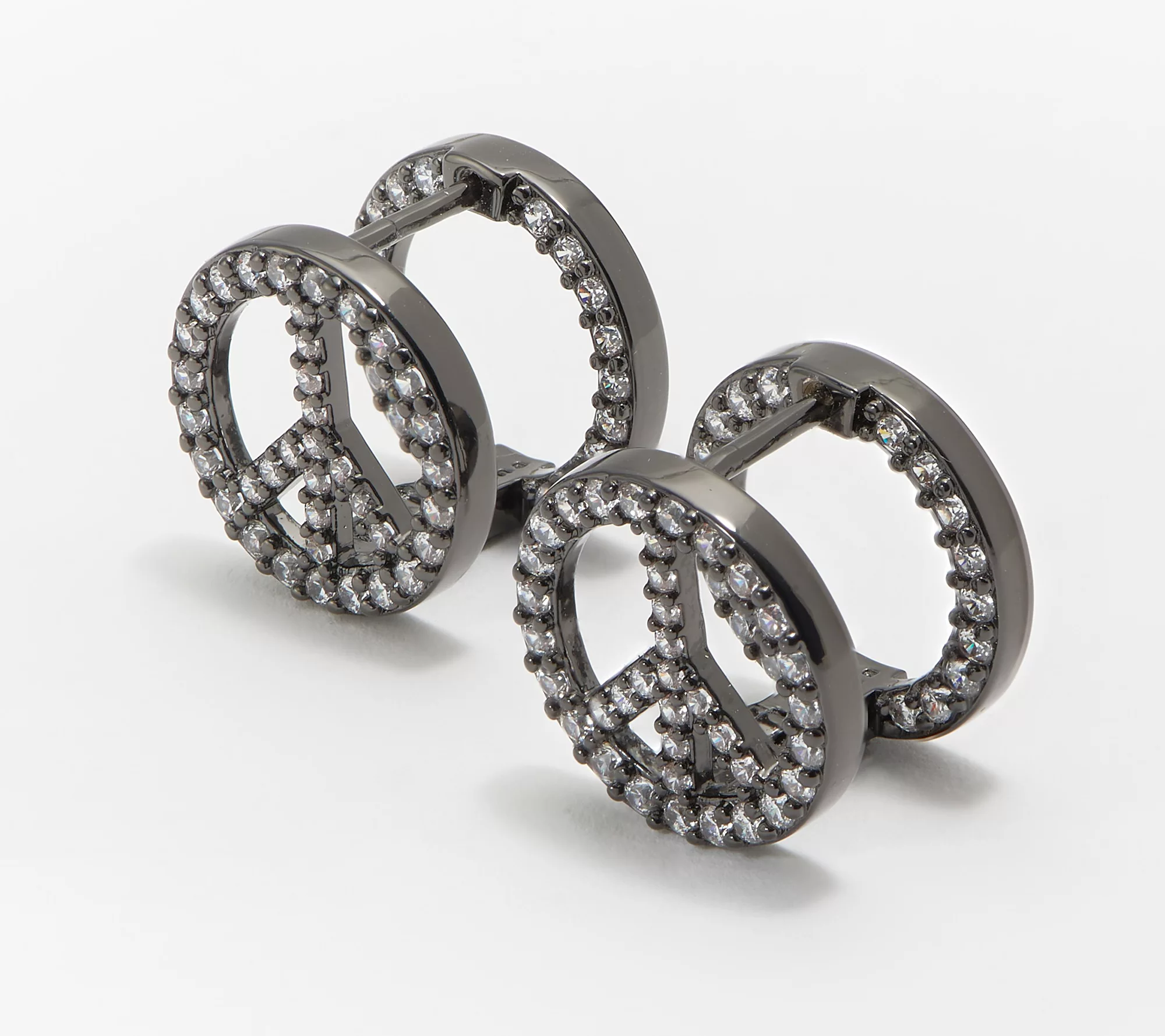 Free as a bird and elegant as can be, these peace-sign huggie hoop earrings take you through casual and more formal occasions with an eye-catching dazzle.
