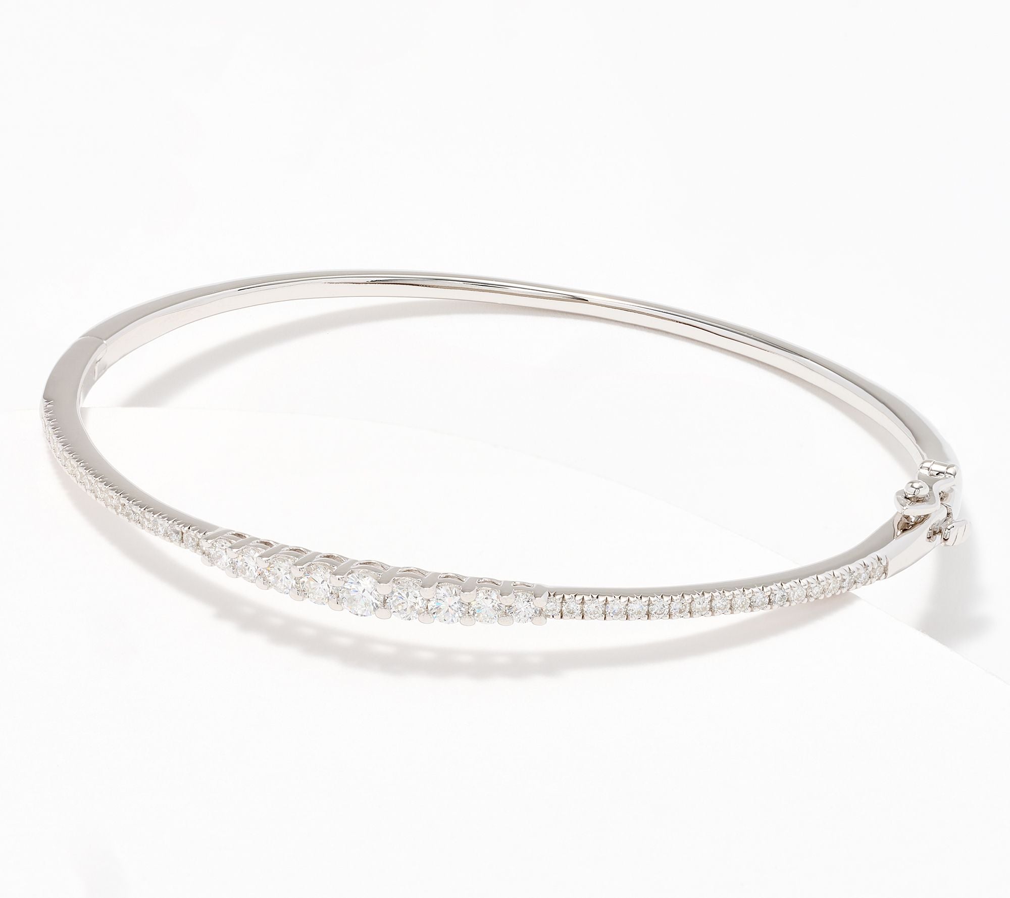 Elevate your everyday with the sophisticated sparkle and gorgeous glimmer of this breathtaking bangle, designed with a graduated line-up of lab-grown diamonds. From Fire Light Lab Grown Diamond Jewelry.
