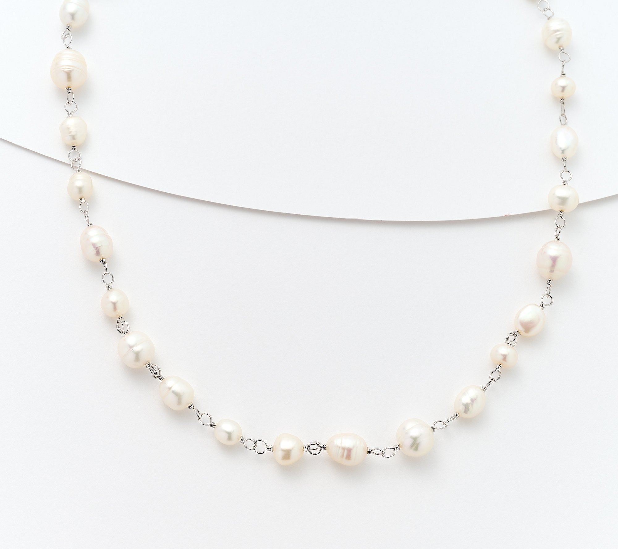 Search over: this is the cultured freshwater pearl necklace you've always wanted! The Honora design's curated mix of oval, ringed, and potato shapes is suspended across sterling silver chain, allowing you to appreciate the full beauty of each cultured freshwater pearl. Treat yourself to mark a milestone, celebrate a career win, or to give your holiday looks next-level sophistication, and discover how quickly this necklace becomes a go-to for all your meaningful moments. From Honora.