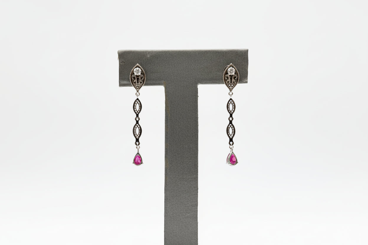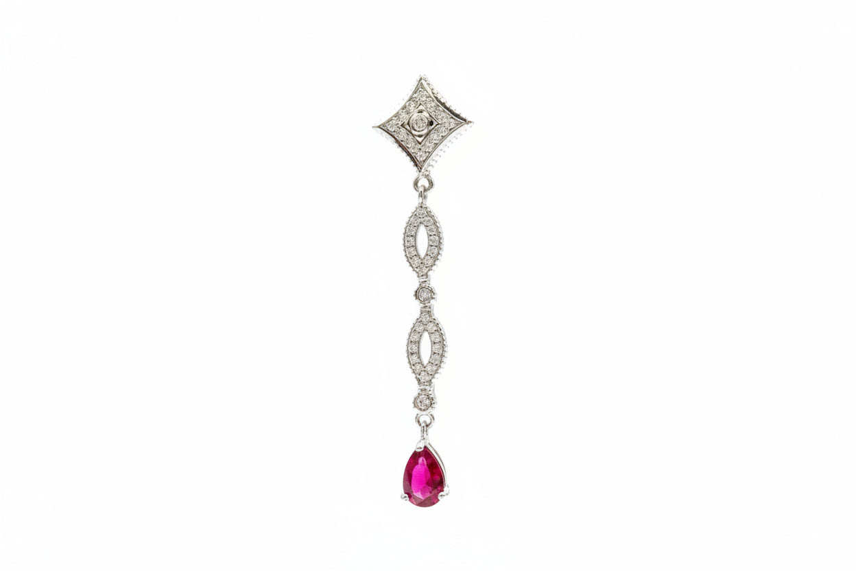 Add timeless elegance and a pop of rich color to your jewelry collection with these stunning HSN Sterling Silver Pear-Shape Ruby Dangle Earrings. Featuring vibrant, pear-cut rubies in a graceful drop design, these earrings are the perfect blend of classic glamour and modern sophistication.