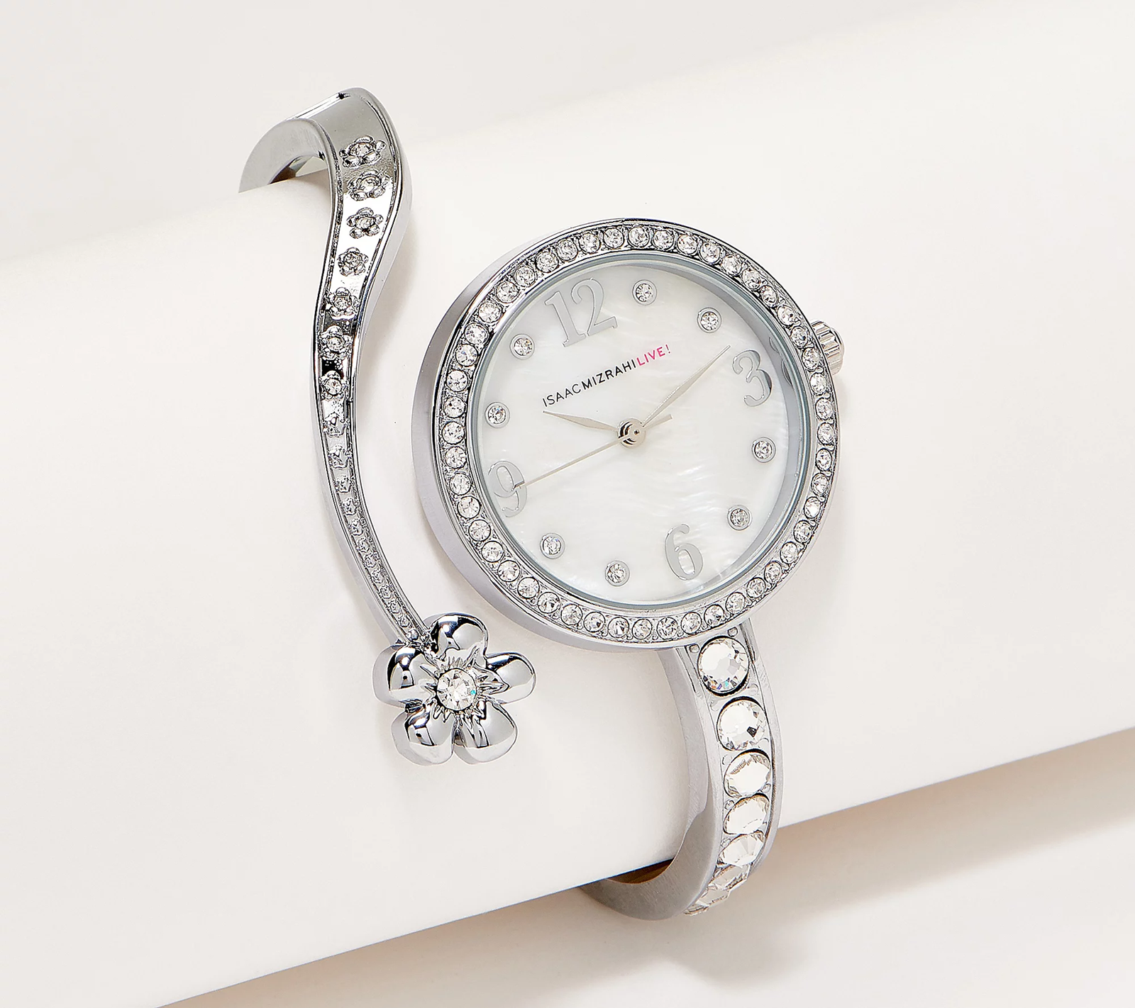 Every outfit should give a nod to nature, don't you think? This bangle watch does it as only floral-fanatic Isaac Mizrahi can, with lots of sparkle and charm. Pair with a flowy dress for brunch or a pant suit for work. Delightful! From Isaac Mizrahi Live!TM.