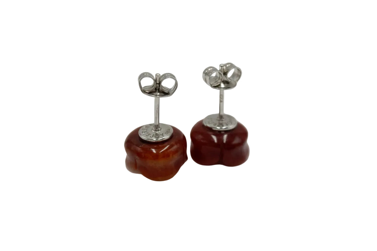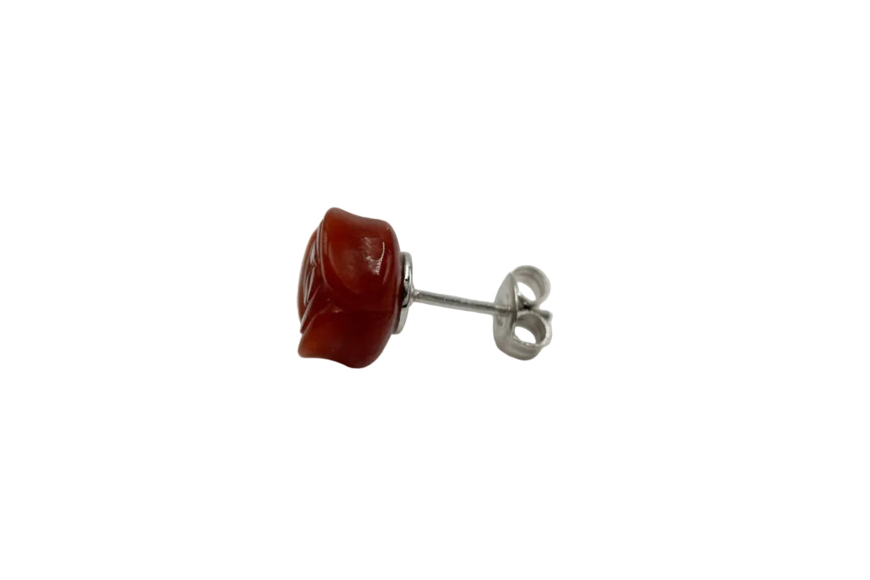 🌹 Jade of Yesteryear Sterling Silver Red Jade Carved Rose Stud Earrings
