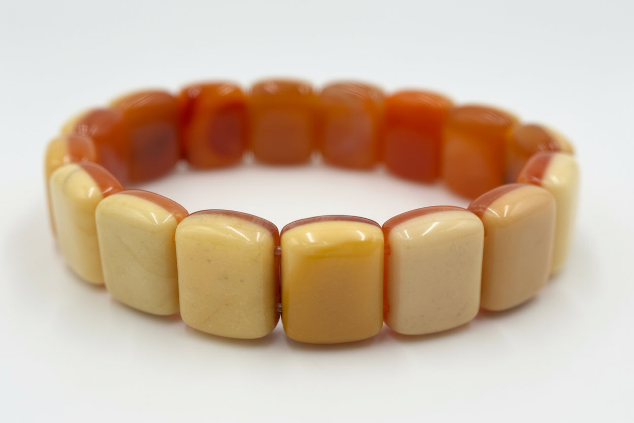 • Gemstones: Two-tone chalcedony beads