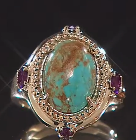 Crafted in goldclad sterling silver, the warm gold tone beautifully contrasts with the bright turquoise and deep purple amethyst, highlighting the natural beauty of each gemstone. Perfect for collectors or anyone seeking a standout, artisan-inspired ring.