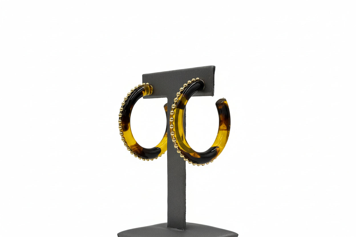 Make a statement of confident elegance with the R.J. Graziano “Splendid Style” Studded Leopard Resin Hoop Earrings—where fierce fashion meets everyday wearability.