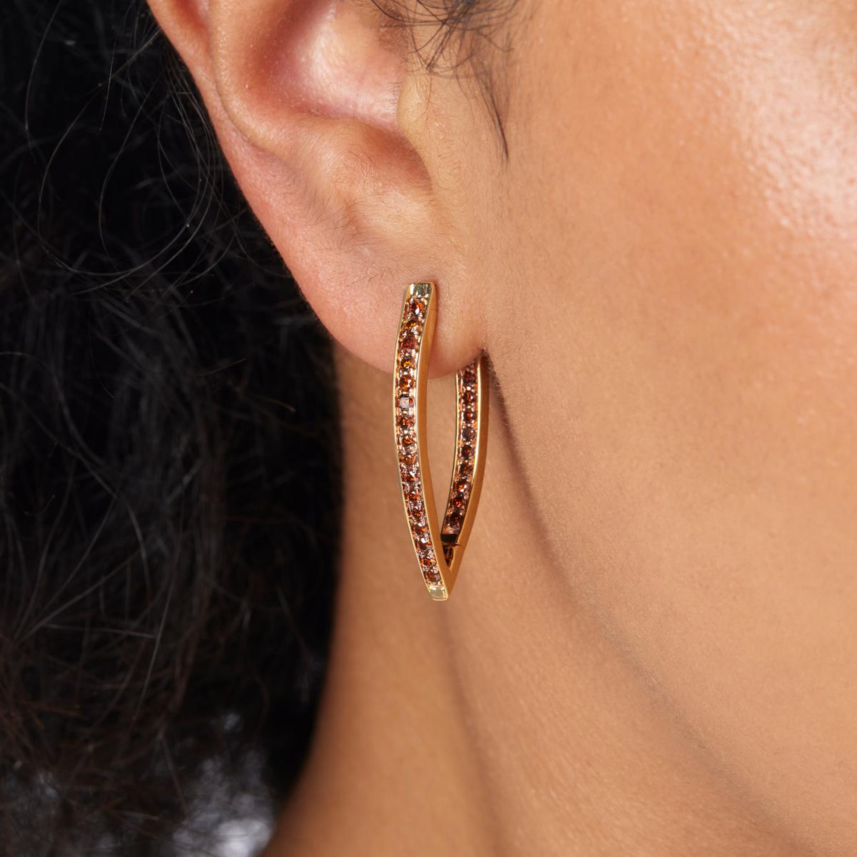 Step up your style with these goldplated elongated hoop earrings. Fancy diamonds trace the sleek silhouette, creating an eyecatching hoop that sets you apart.
