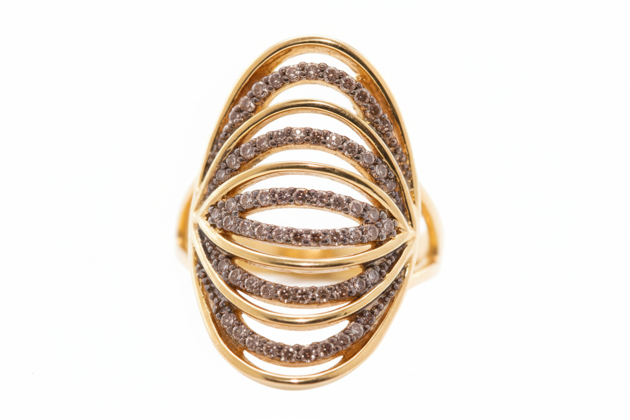 The soft, warm tones of champagne diamonds create a unique and elegant sparkle, beautifully enhanced by the goldclad setting. This ring is perfect for adding understated luxury to both everyday outfits and special occasions.