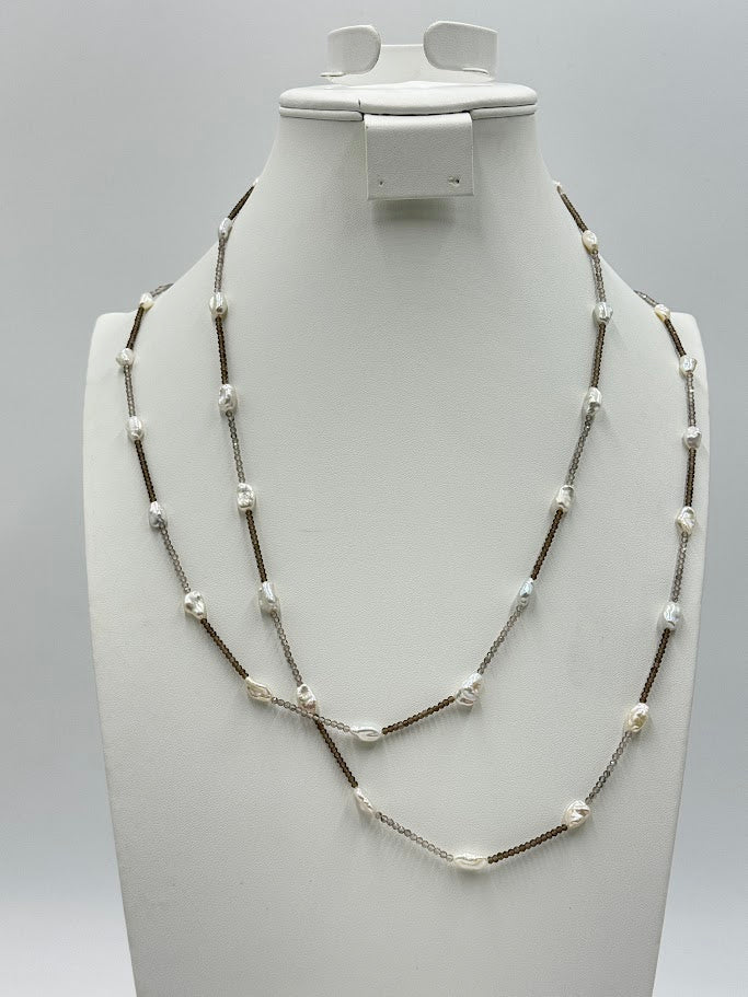Make an elegant statement with this Rarities Sterling Silver Labradorite & Pearl Necklace. Featuring luminous labradorite stones paired with classic pearls, this long 54-inch design offers versatile styling—wear it long, doubled, or layered for effortless sophistication. Crafted with sterling silver accents, the natural iridescence of labradorite beautifully complements the soft glow of pearls, creating a timeless piece with modern appeal.