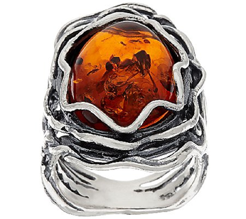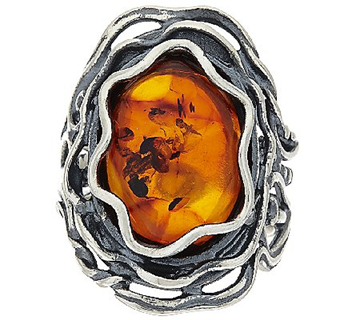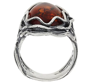 Rich color and admirable design. A large amber cabochon and an organic, multi-textured, openwork shank compete for your attention on this elongated sterling silver ring. From Or Paz(R) Sterling Silver Jewelry from Israel.